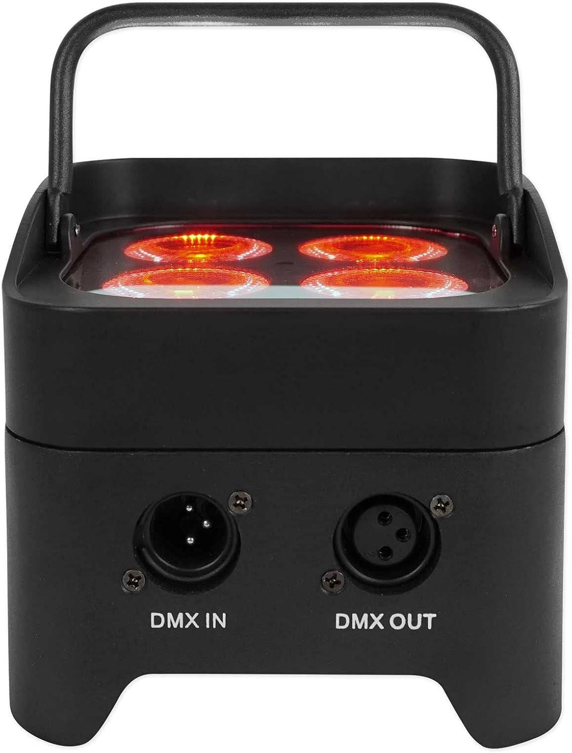 Built in rechargeable battery allows you to use the lights without plugging them in making your setup 100% wireless. Light Source: 4 LEDs / 6 Watts each LED. Each LED is a 6-in-1 RGBWA+UV (RED, GREEN, BLUE, WHITE, AMBER + ULTRA VIOLET). DMX control: 6 or 10 channels. DMX input and output (3 pin). 50,000 hours life expectancy. IRC wireless remote control included