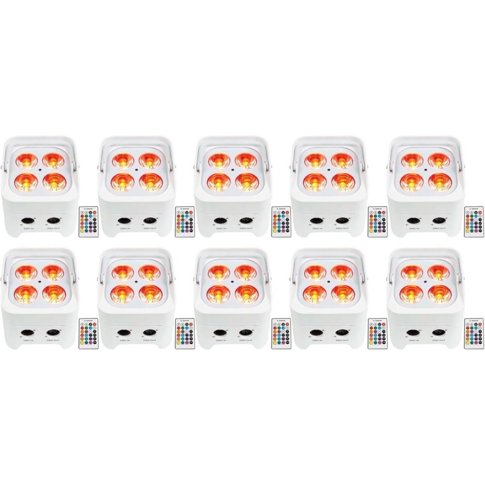 Package Includes: (10) RockvilIe BEST PAR 50 White Rechargeable Par Wash Up-Light Wireless DMX+RGBWA+UV. BEST PAR 50 White: RockvilIe BEST PAR 50 White Rechargeable Par Can Wash Light w/ Wireless DMX+RGBWA+UV. 100% true wireless! Built in 2.4GHZ Wireless DMX 512 receiver allows you to link multiple lights together without wires
