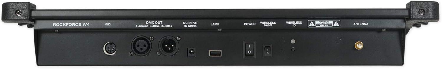 Field replaceable batteries. 110/220 switchable for use in any country. Unit Dimensions: 8.07 x 7.87 x 4.76 inches. Unit Weight: 7.28 Lbs. Wireless DMX range: 1,000 to 1,500 feet. Lighting controller. USB LED Light. Power Adapter (DC 9-12V 500mA,90V~240V). Wireless transmitter antenna. Manual and warranty card. RockvilIe ROCKFORCE W4 384 Channel Wireless DMX Lighting Controller+MIDI Controls. Built in wireless DMX transmitter and antenna