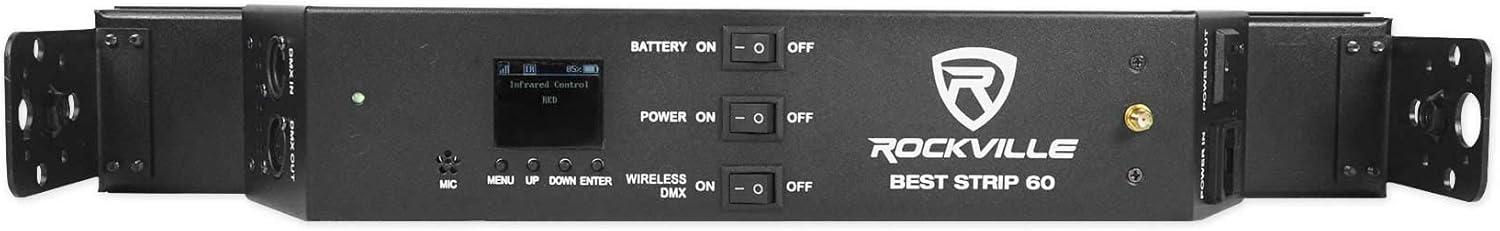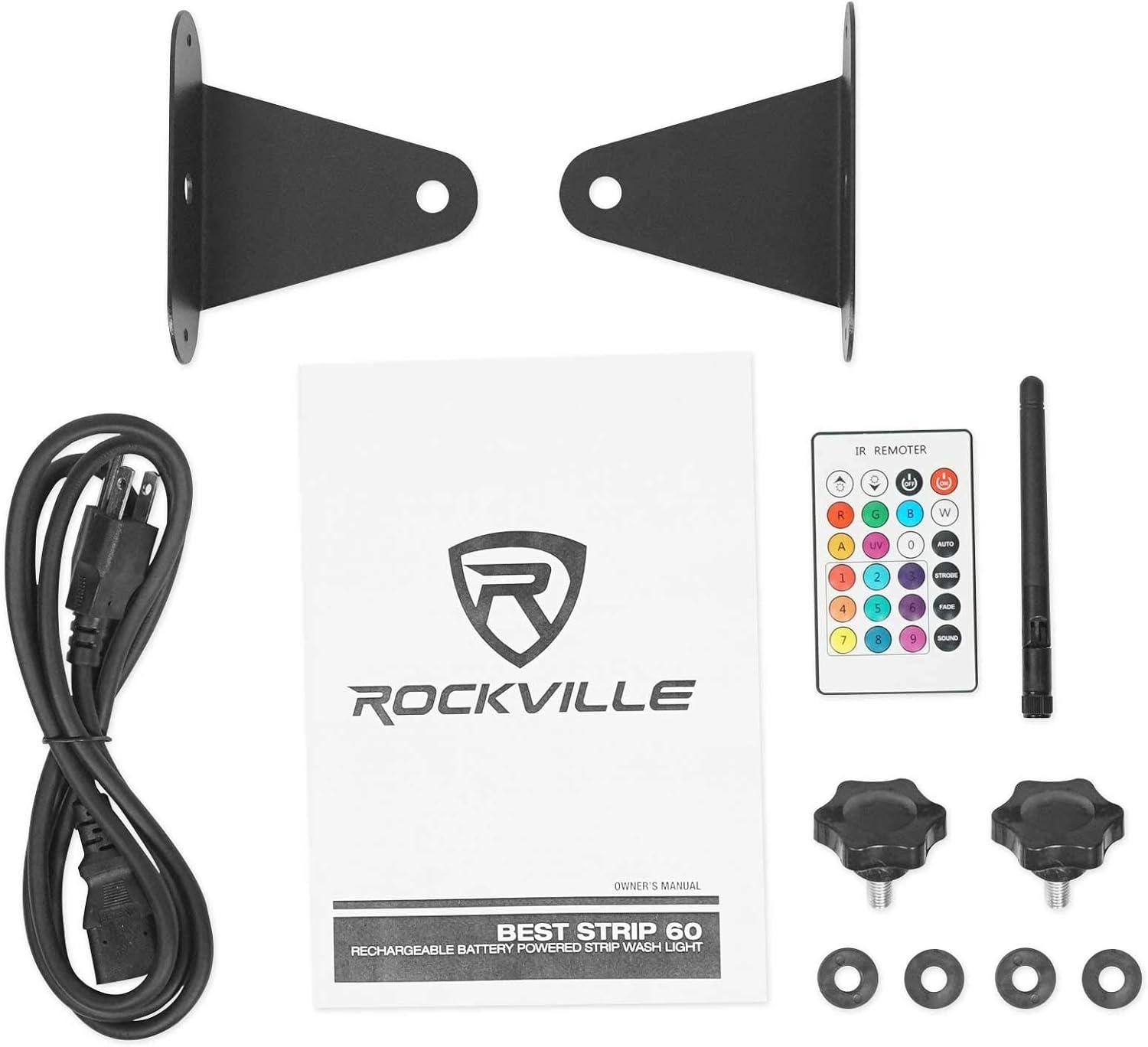 Rockville Best Strip 60 Rechargeable Battery Powered Strip Wash Light, 100% true wireless! Built in 2.4GHZ Wireless DMX 512 receiver allows you to link multiple lights together without wires, Built in rechargeable battery allows you to use the lights without plugging them in making your setup 100% wireless, Light Source: 6 LEDs / 6 Watts each LED, Each LED is a 6-in-1 RGBWA+UV (RED, GREEN, BLUE, WHITE, AMBER + ULTRA VIOLET)