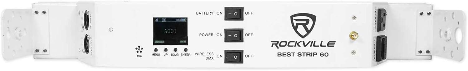 Best Strip Light. Remote control. Dual bracket & Feet. Power cable (5 ft.). User manual and warranty card. RockvilIe Best Strip 60 Rechargeable Battery Powered Strip Wash Light. 100% true wireless! Built in 2.4GHZ Wireless DMX 512 receiver allows you to link multiple lights together without wires