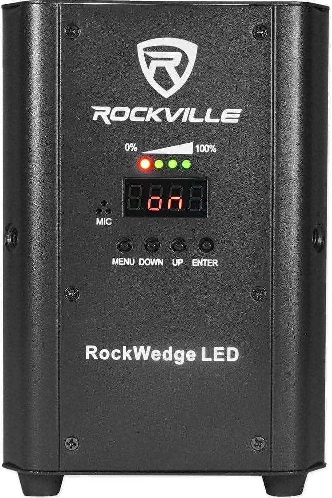 Includes of RockWedge LED: Par Light. Remote control. Mounting Clamp. Power cable (4 feet). User manual and warranty card. Features: Rockville RockWedge LED 54w RGBWA+UV Rechargeable Battery Wireless DMX Par Light. 100% true wireless! Built in 2.4GHZ Wireless DMX 512 receiver allows you to link multiple lights together without wires. Built in rechargeable battery allows you to use the lights without plugging them in making your setup 100% wireless.