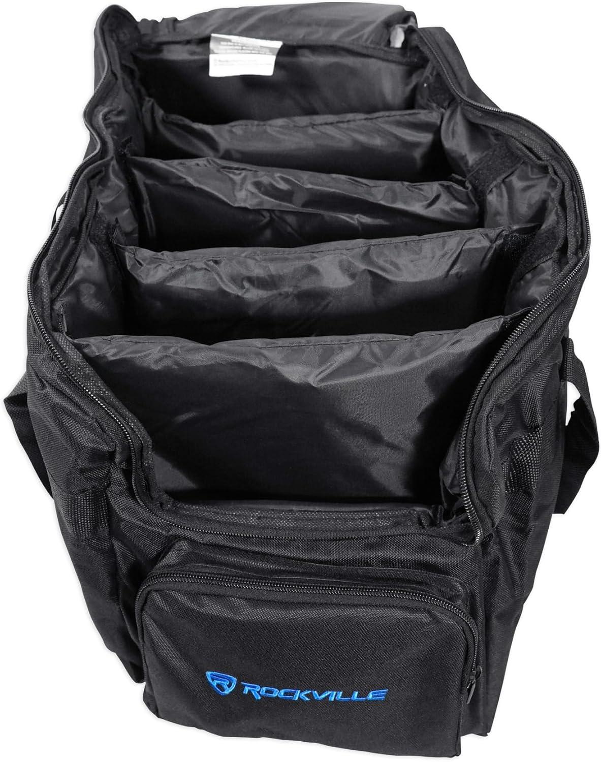 PACKAGE INCLUDES: (10) Rockville RockWedge LED RGBWA+UV Rechargeable Wireless Wash DJ Up-Light in White, (2) Rockville RLB30 Bag for 4 Slim Par Chauvet/ADJ Lights+Controller+Accessories