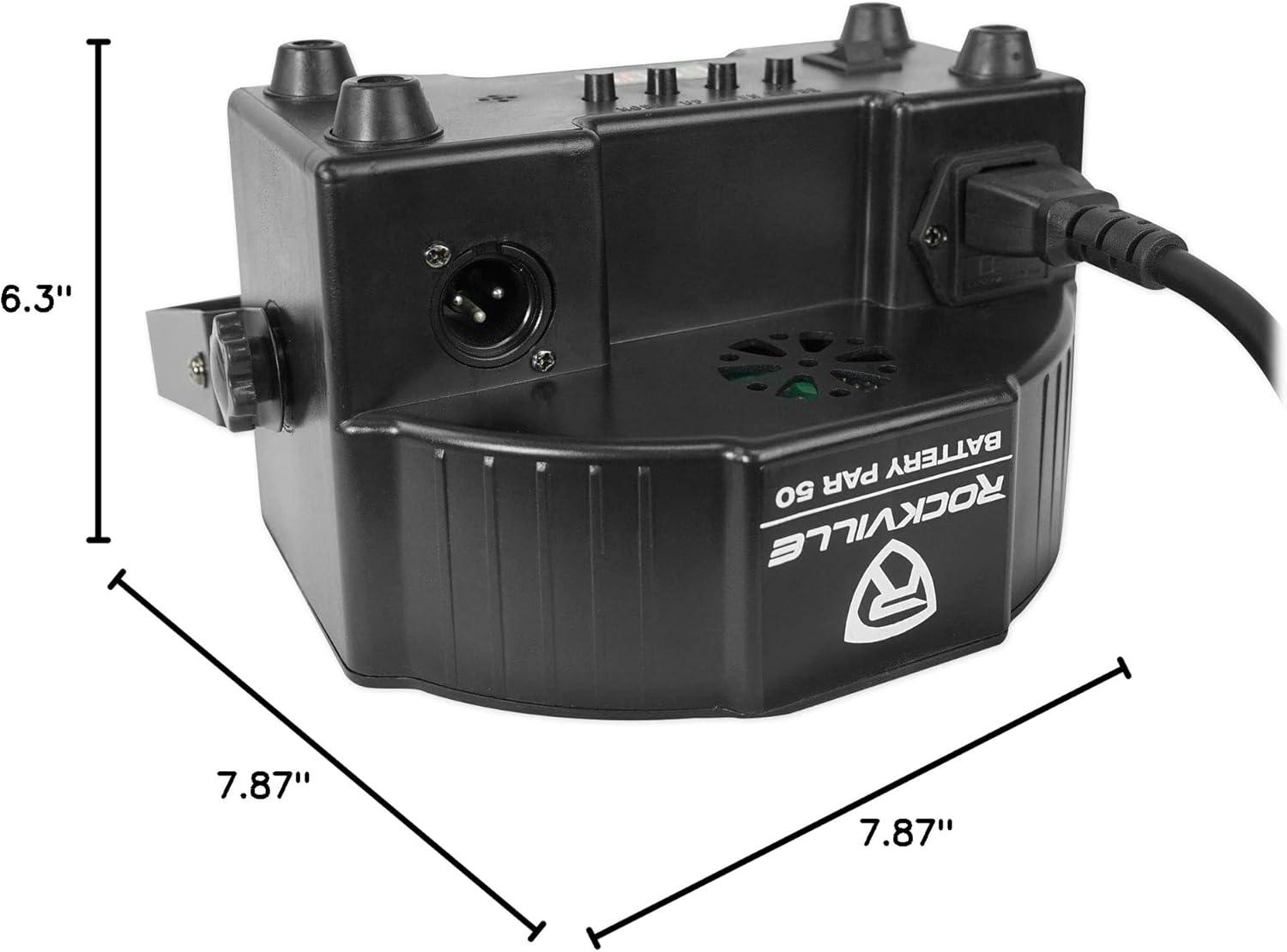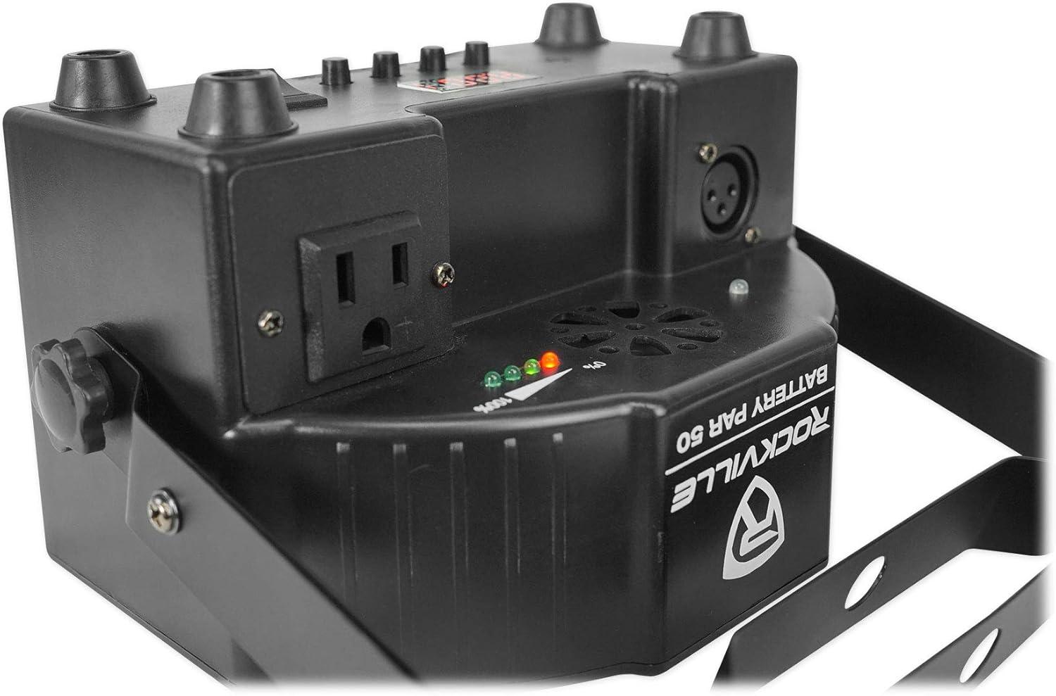 Par Light. Remote. Dual bracket. Adapter. User manual & warranty card. Features: RockvilIe BATTERY PAR 50 Rechargeable LED DMX DJ Club Wash Up-Light w/ Remote. RockvilIe BATTERY PAR 50 RGB Rechargeable Lithium Battery Powered Wash Light. Built in 4400mA lithium rechargeable battery allows you to use the lights without plugging them in