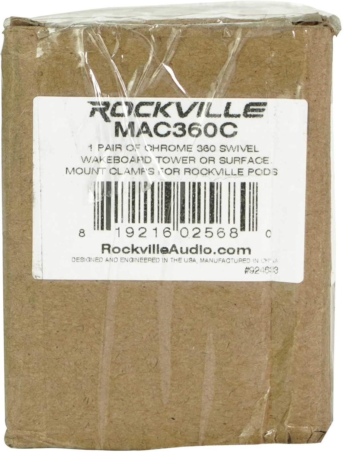 Features: Pair Rockville MAC360C 360 Degree Swivel and Surface Mount Clamp for MAC65, MAC69, MAC80, MAC90, MAC525 Pods. Marine grade aluminum swivel clamps. Designed for use with MAC525, MAC65, MAC69, MAC80, MAC90 speaker pods. Aircraft grade aluminum construction. Adds 360 degree rotational swivel to your MAC cans. Ads Surface mount option to your MAC cans. Includes all necessary mounting hardware. Color: Polished chrome. Product weight: 1.5 lbs per pair. Unit dimensions: 3.1″ x 2.3″ x 1.5″