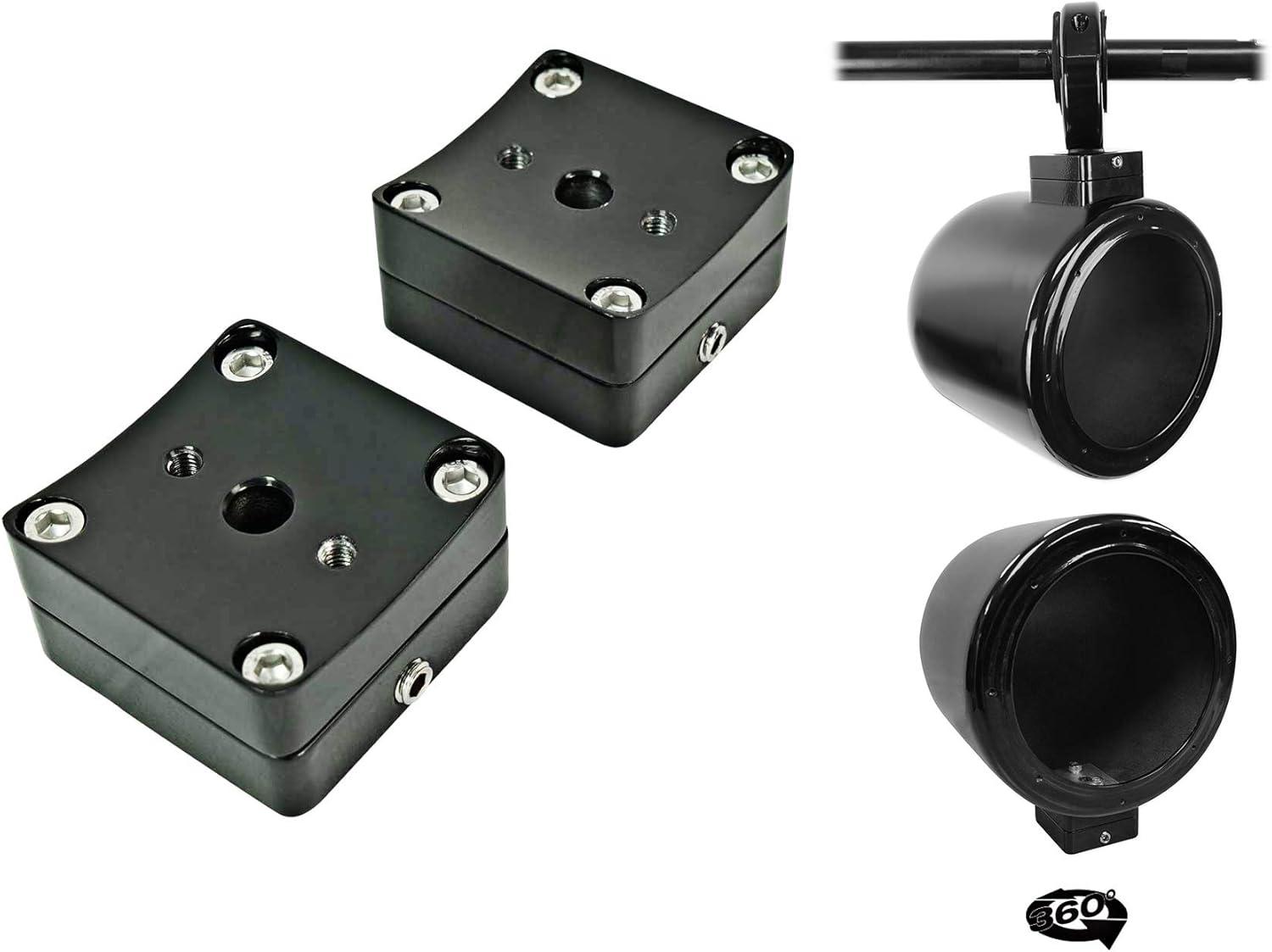 Pair Rockville MAC360S 360 Degree Swivel and Surface Mount Clamp for MAC65, MAC69, MAC80, MAC90, MAC525 Pods. Marine grade aluminum swivel clamps. Designed for use with MAC525, MAC65, MAC69, MAC80, MAC90 speaker pods. Aircraft grade aluminum construction. Adds 360 degree rotational swivel to your MAC cans. Ads Surface mount option to your MAC cans. Includes all necessary mounting hardware. Color: Black. Specifications: Product weight: 1.5 lbs per pair. Unit dimensions: 3.1″ x 2.3″ x 1.5″