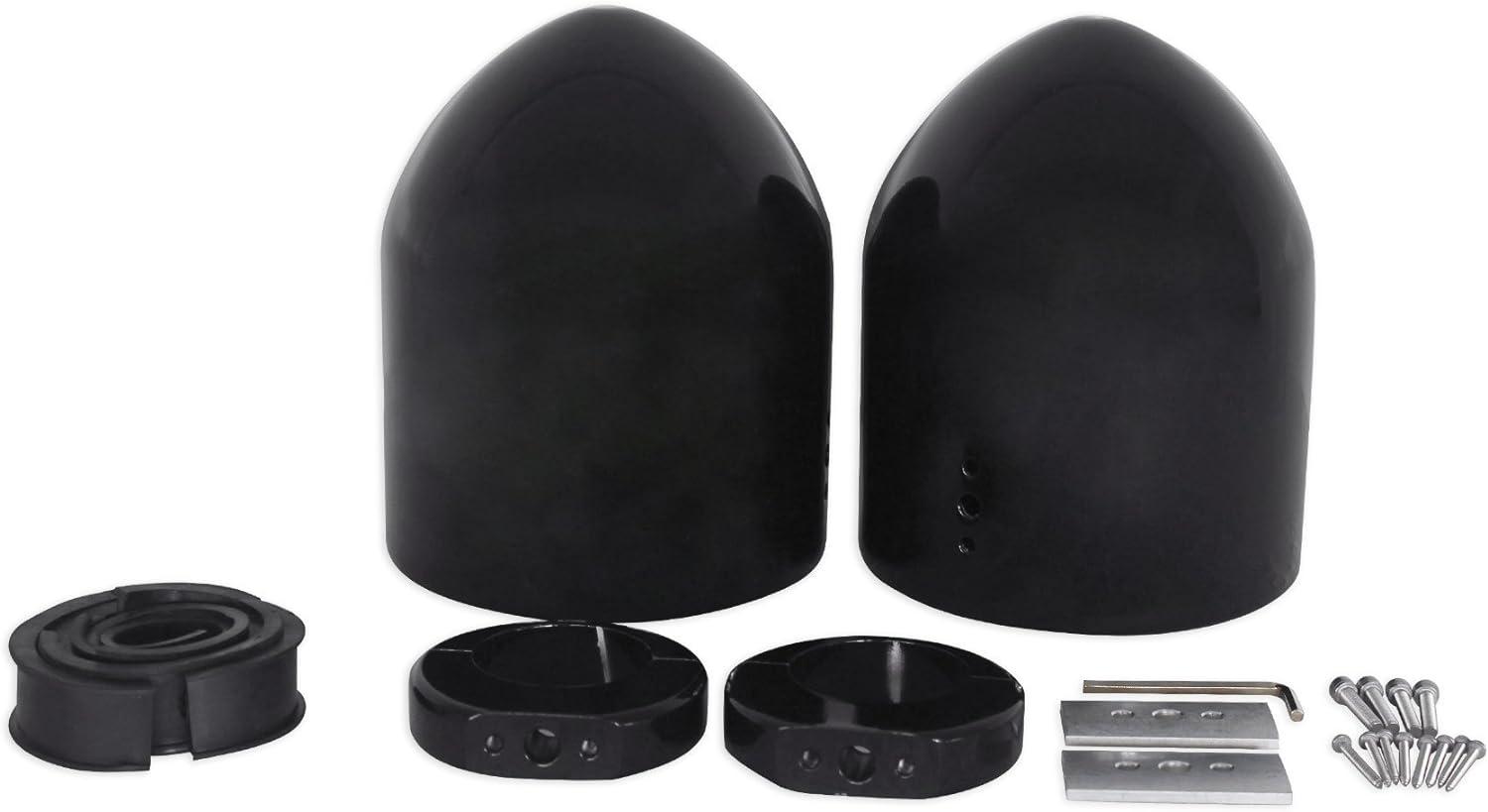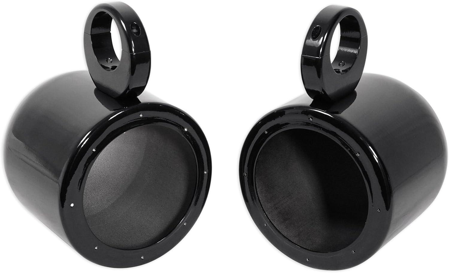 Pair of RockvilIe MAC65B black aluminum can wakeboard tower enclosures. Made of high quality 6061 aircraft grade aluminum. Beautiful black powder-coat finish. 100% waterproof and fully marinized against salt and fresh water conditions. Internally wired for clean installno exposed wires or terminals. High efficiency design features the perfect airspace for 6.5 speakers. Rugged universal mounting clamps made of 6061 aluminum