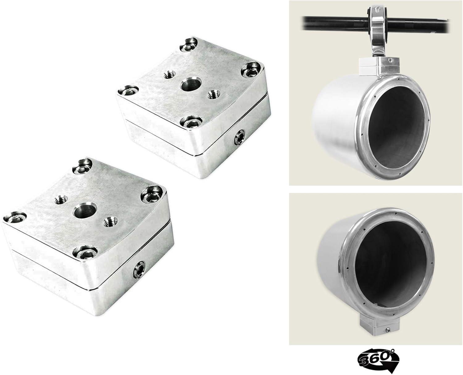 Features of MAC360C KICKER SURFACE: Pair Rockville MAC360S 360 Degree Swivel and Surface Mount Clamp for MAC65, MAC69, MAC80, MAC90, MAC525 Pods, Marine grade aluminum swivel clamps, Designed for use with MAC525, MAC65, MAC69, MAC80, MAC90 speaker pods, Aircraft grade aluminum construction, Adds 360 degree rotational swivel to your MAC cans, Ads Surface mount option to your MAC cans, Includes all necessary mounting hardware, Color: Polished chrome