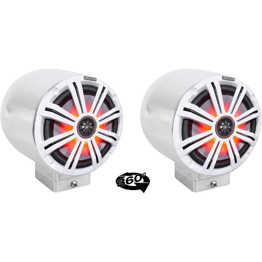 Model Name (2) kicker KM8 8″ LED 360° Degree Swivel Chrome Surface Mount Boat Speakers