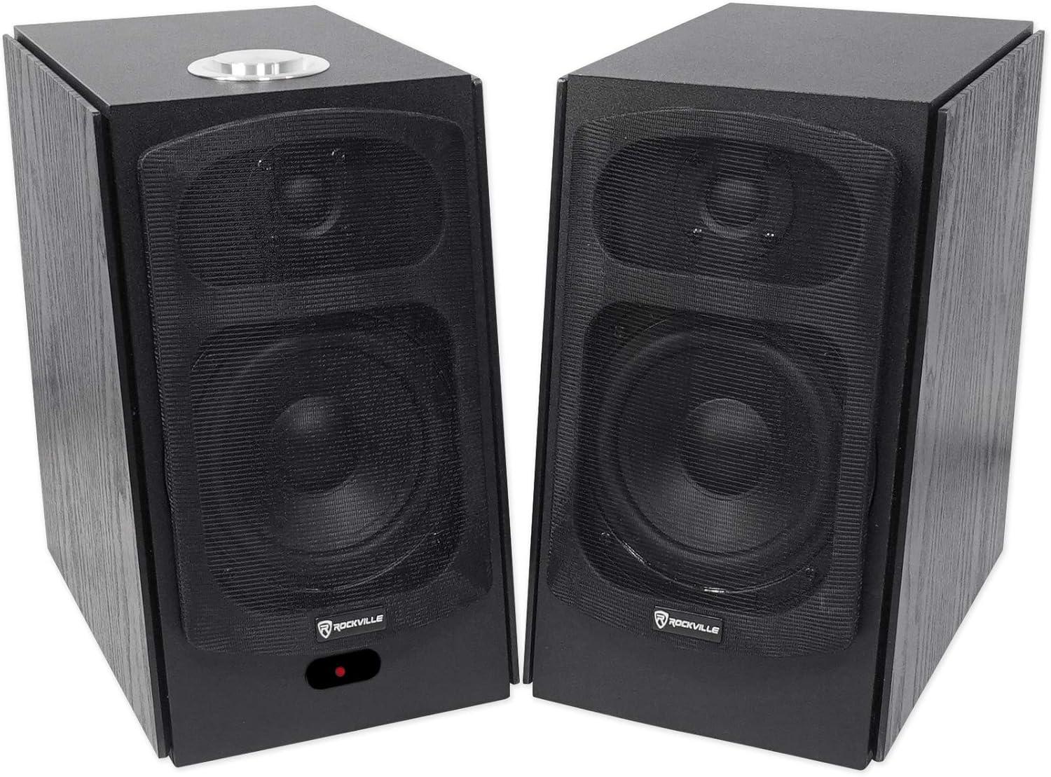 Package Includes: (1) Pair of RockvilIe HD5C 5″ 150w RMS Powered Bluetooth Bookshelf Home Theater Speakers. (1) Pair of RockvilIe RHTSB 36″ Inch Bookshelf Speaker Stands Surround Sound Home Theater. Includes: (2) speakers. Remote control. (2) batteries. RCA to AUX cable. Owners manual. Warranty card. Features: RockvilIe HD5B 5″ 150 Watt RMS Powered Bookshelf Home Theater Speakers – In Black. 5 Woofer and 0.75 inch tweeter in each speaker