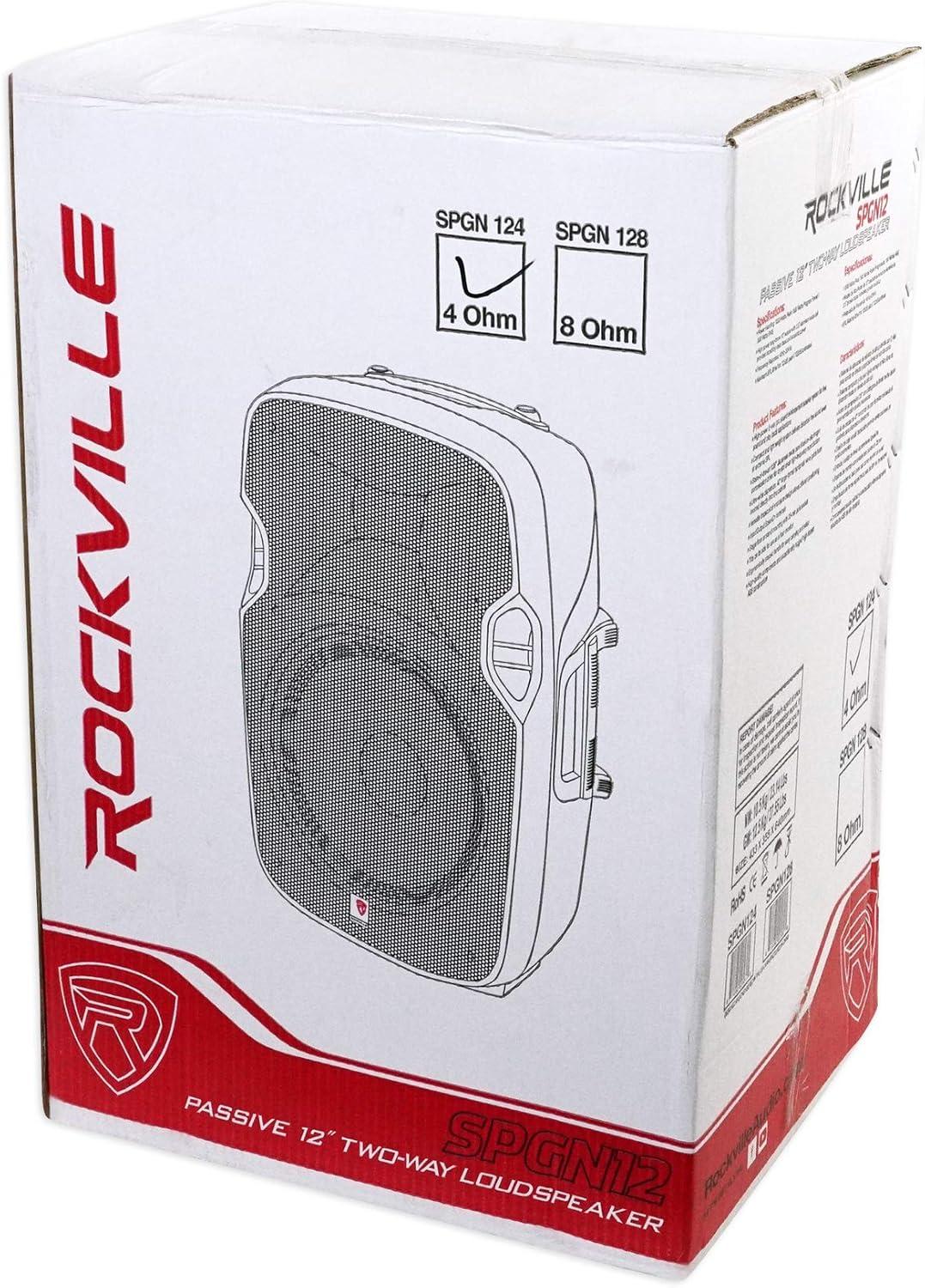 Features of SPGN124: Rockville SPGN124 12“ Passive 1200 Watt 4 Ohm Lightweight DJ PA ABS Cabinet Speaker. Power Handling: 300 Watts RMS / 600 Watts Program Power / 1200 Watts Peak. High power long-throw 12'' woofer with 2.5“ aluminum voice coil provides incredibly deep bass and acoustic power. High-power 2-way pro sound reinforcement speaker system for live sound and play back applications. Compact and light weight system delivers distortion free sound even at extreme SPL. State-of-the-art 1.35'' Japanese made pure titanium-diaphragm compression driver for crystal clear high-frequency reproduction. Twist-Lock speakon input and output connections.