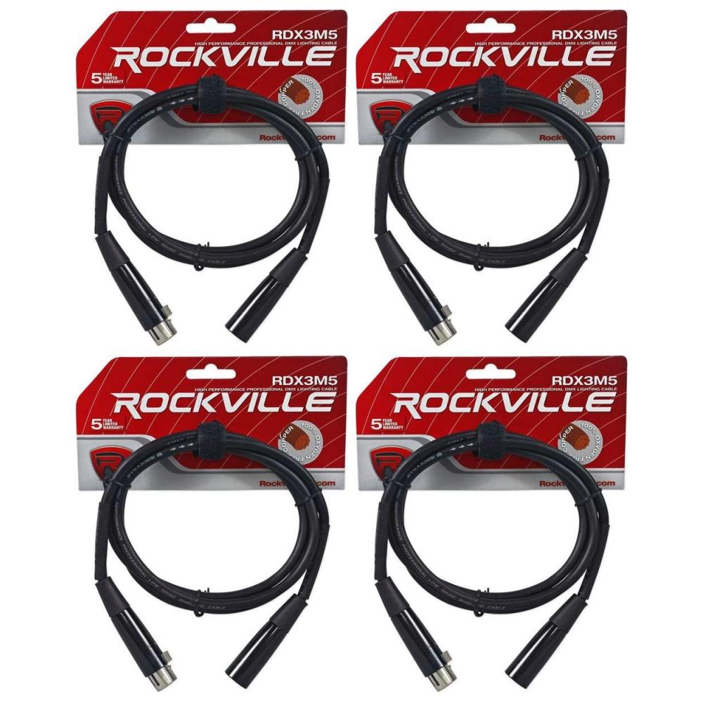 PACKAGE INCLUDES: (4) Rockville RDX3M5 5 Foot 3 Pin DMX Lighting Cable 100% OFC Copper Female to Male