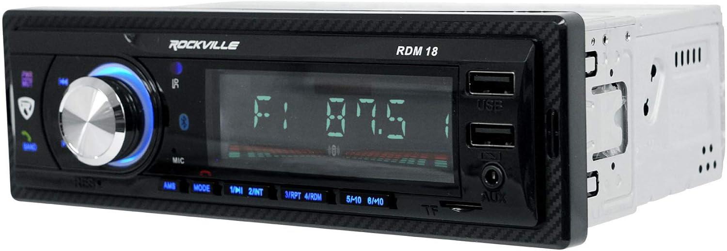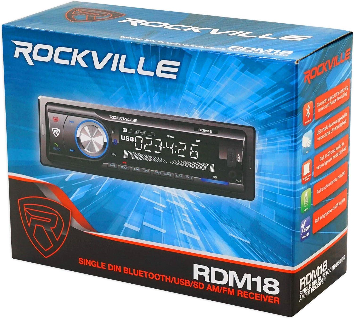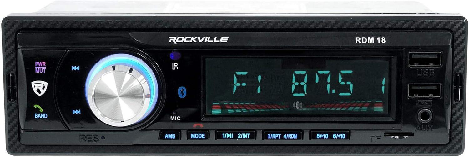 SEAMLESS CONNECTIVITY: Stream music via Bluetooth, play MP3s through USB or 32GB SD card, or use the aux input on the Rockville RDM18. Dual USB ports support music playback and smartphone charging, keeping you connected on the go.