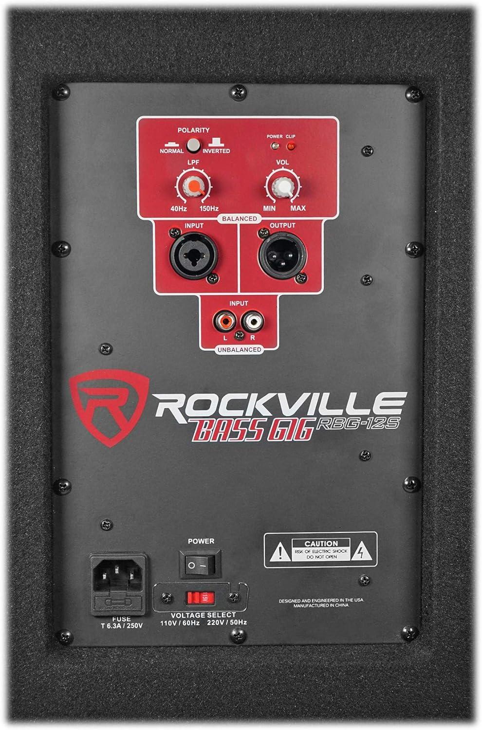 Features of RBG12S: Rockville RBG12S 12″ 1400 Watts Bass Gig 1200 Active Powered PA Subwoofer. 350 Watts RMS / 700 Watts Program / 1400 Watts Peak. 12″ Woofer with 80oz Magnet and 2″ Voice Coil. Features of RCGT20: Rockville RCGT20 1/4'' TS to 1/4'' TS Guitar / Instrument Cable. 24 AWG 100% Copper Conductors for Enhanced Signal Clarity