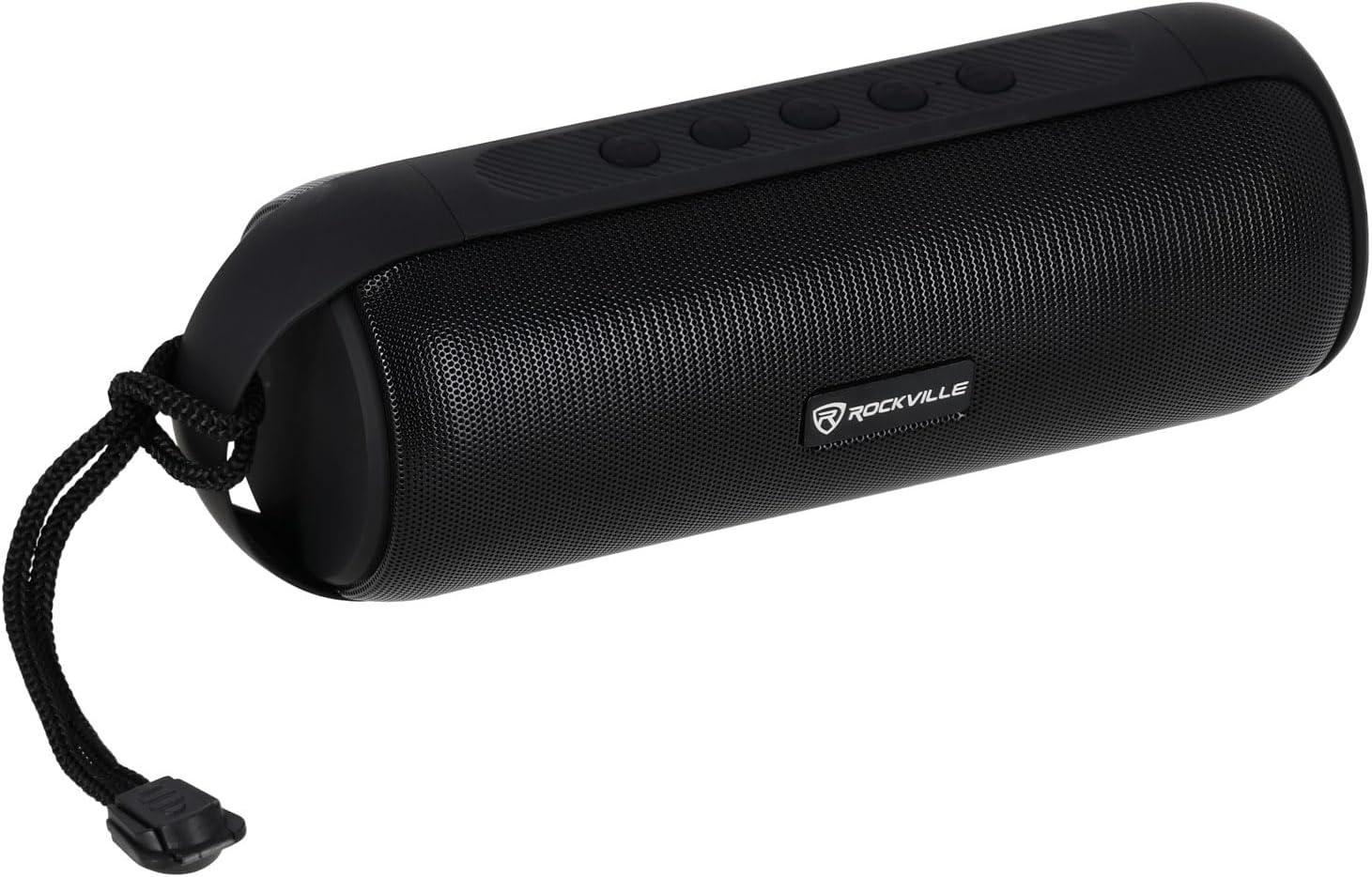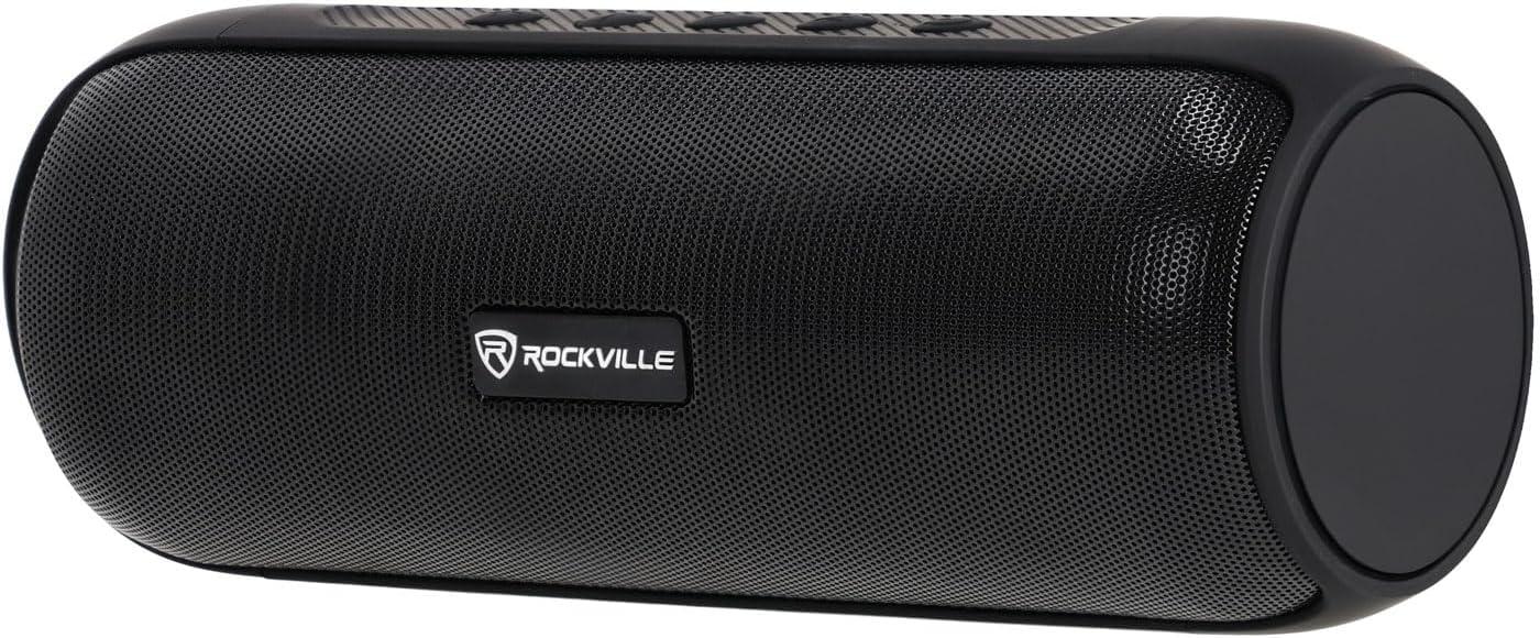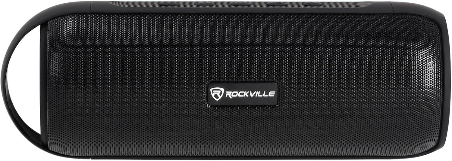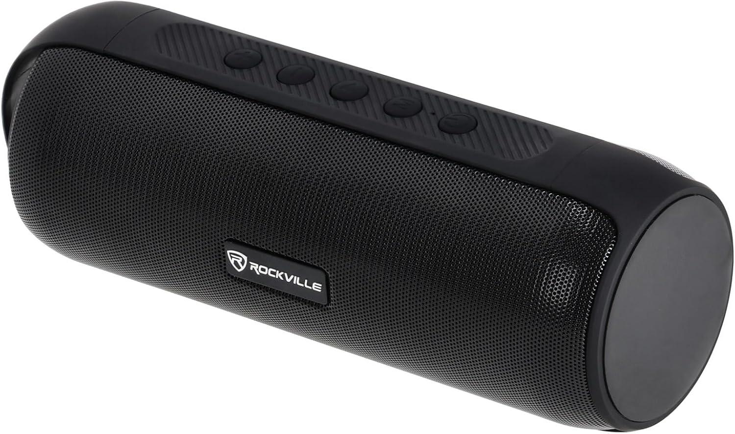 Portable speaker for pool or beach parties The durable and water resistant design make this perfect. Perfect for use as a conference room speakerphone system. RockvilIe RPB25 Bluetooth speaker for lphone/Android/Laptop w/USB+SD+Aux in+FM. 40 watts peak power. 15 watts continuous RMS. 360-degree sound dispersion technology. True 2 channel stereo sound delivers top-notch sound quality. Battery charges with included USB cable