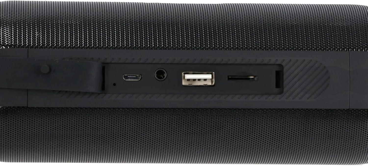 3.5MM aux input (aux cable included). Built in FM radio with auto scan. Dual 2 inch drivers with 42 gram magnet, rubber surrounds, and high excursion. Handle enables you to carry the speaker easily. No distortion can be heard even at top volume. Distortion: Less than 1 %. Professional voice conformations. Auto turn off after 15 minutes of no music to conserve battery life. Frequency Response: 50HZ 20KHZ. Signal to noise ratio: 85dB. Unit weight: 0.84 pounds
