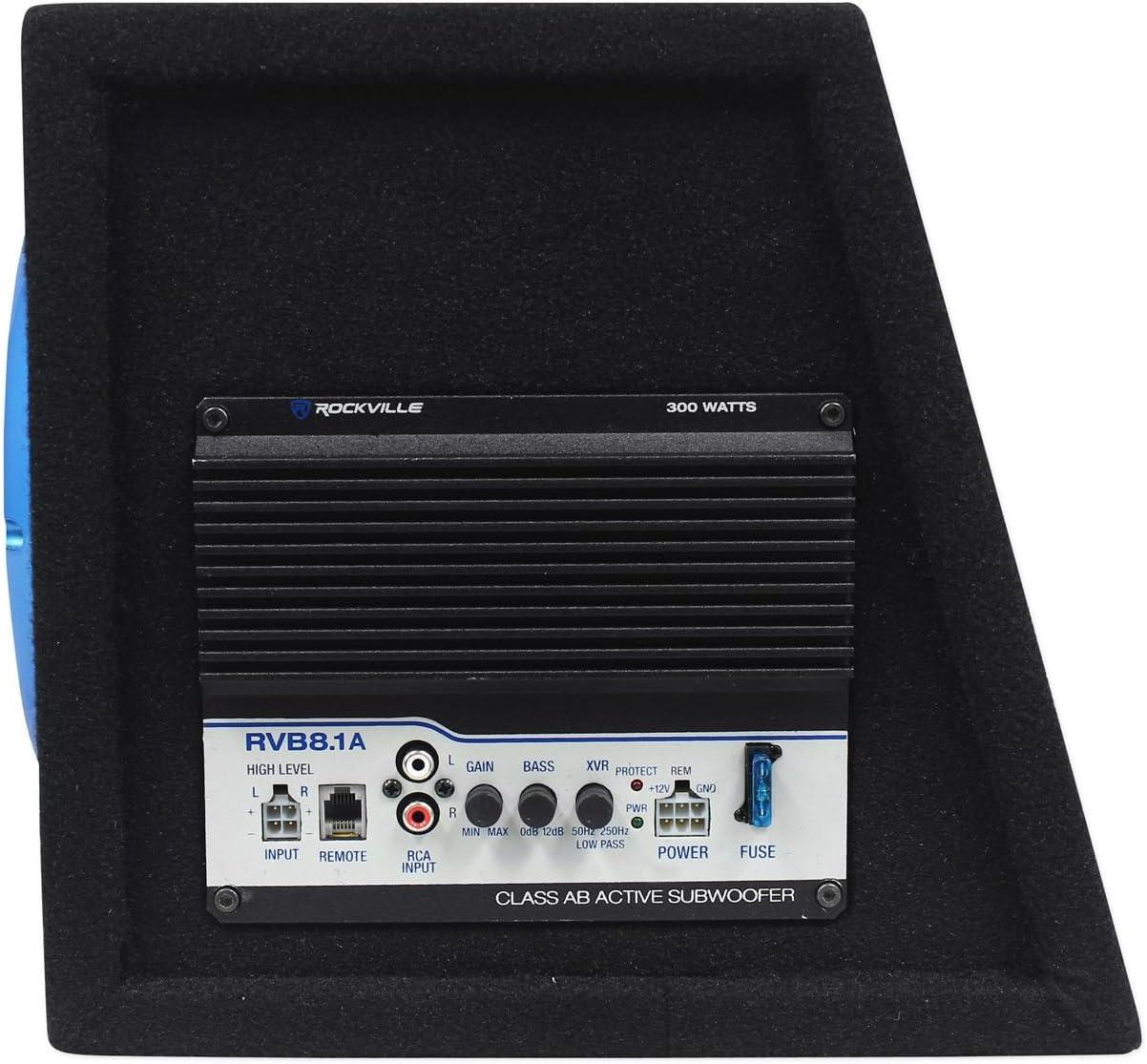 RockvilIe RVB8.1A 8" 300W Powered Amplified Car Subwoofer System+Remote+Wire Kit
