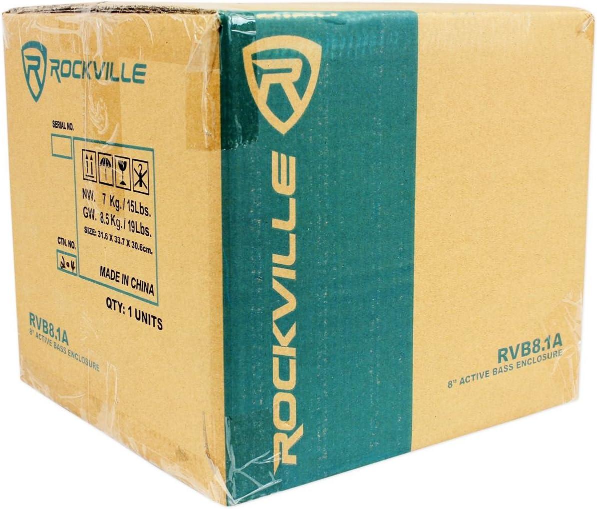 RockvilIe RVB8.1A 8″ 300W Powered Amplified Car Subwoofer System+Remote+Wire Kit