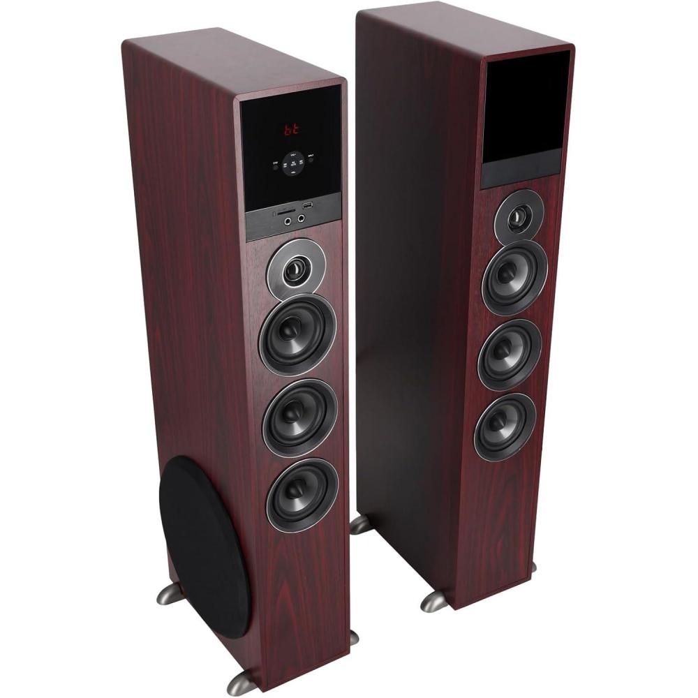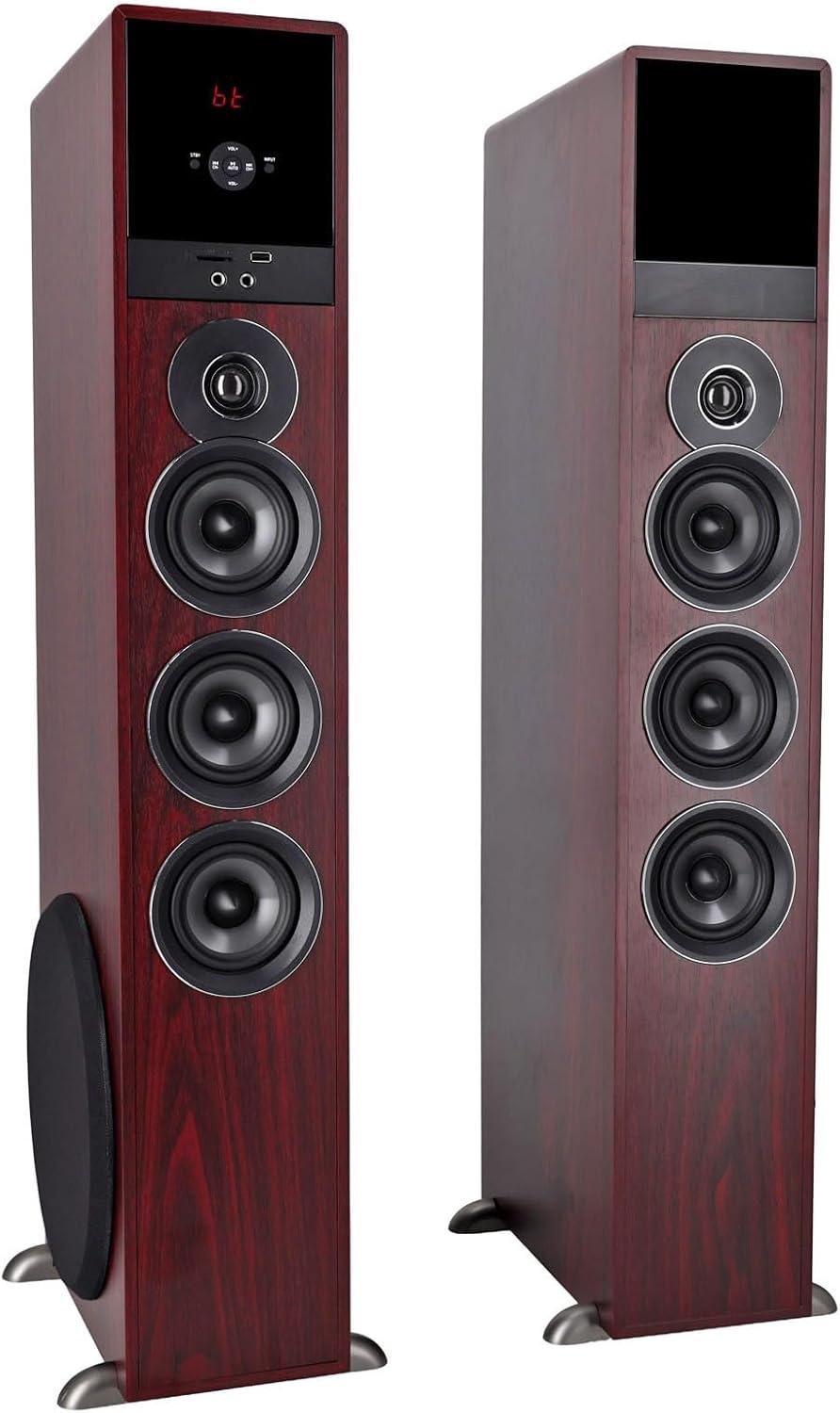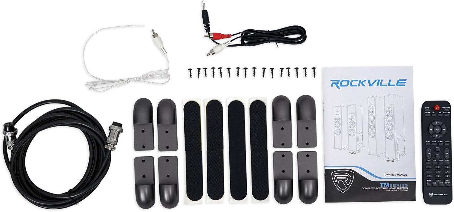 Features: RockvilIe TM150C Complete Powered Home Theater Tower Speaker System With Dual 10″ Subs. Built In Bluetooth with 70 foot range and perfect interference-free sound quality. Built in USB playback. Built in SD card playback. Built in FM radio with crystal clear reception. (2) 10 subwoofers with incredibly loud and deep bass response. (6) Full range drivers: 4 full range drivers with polypropylene cones, rubber surrounds, and bullet dust cap to give you incredible loud and clear sound