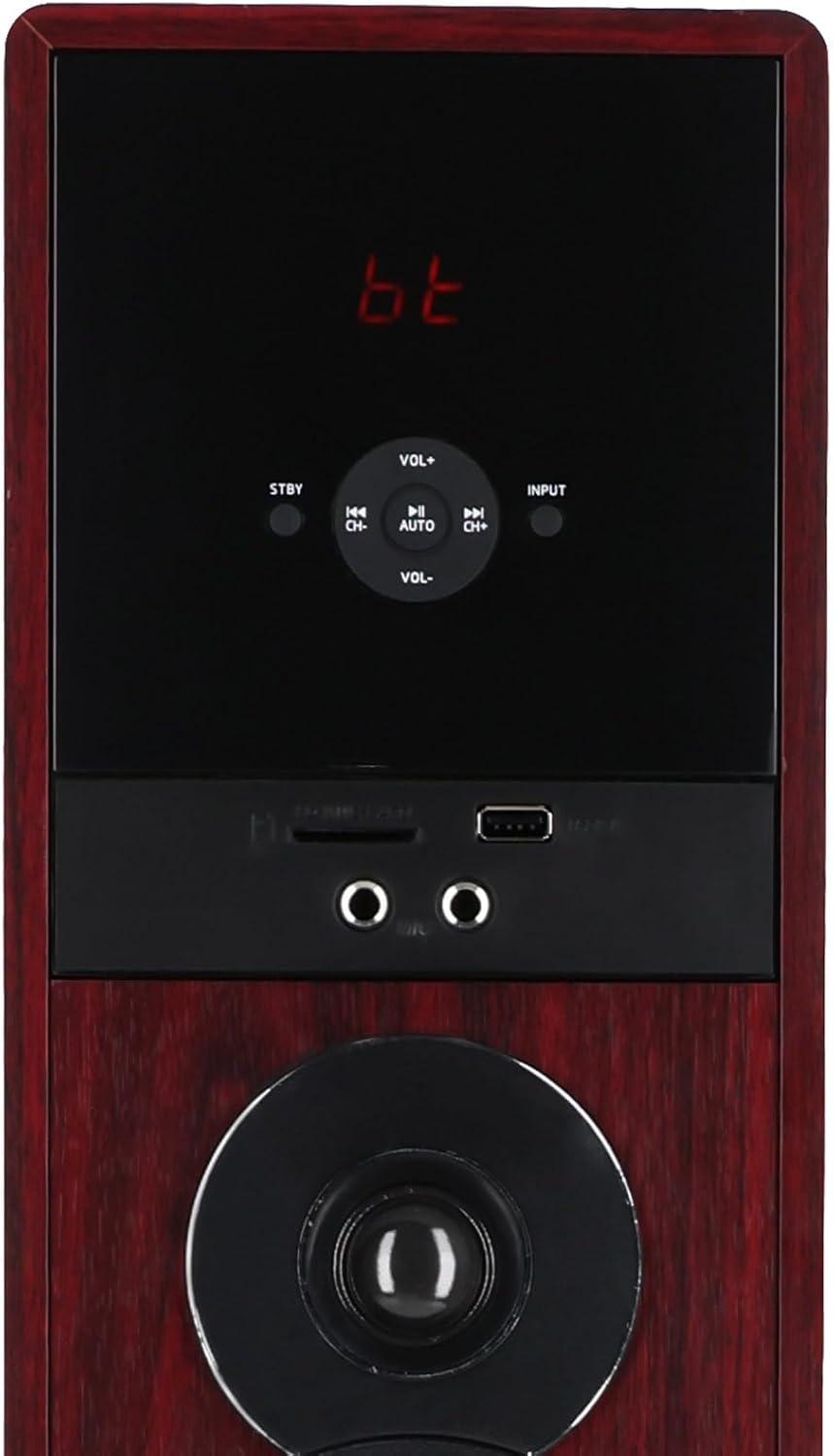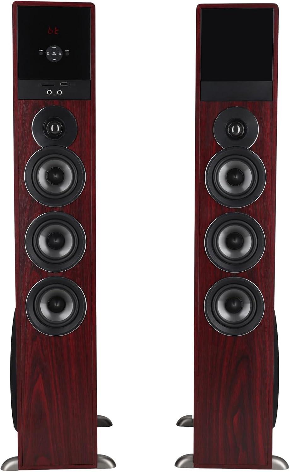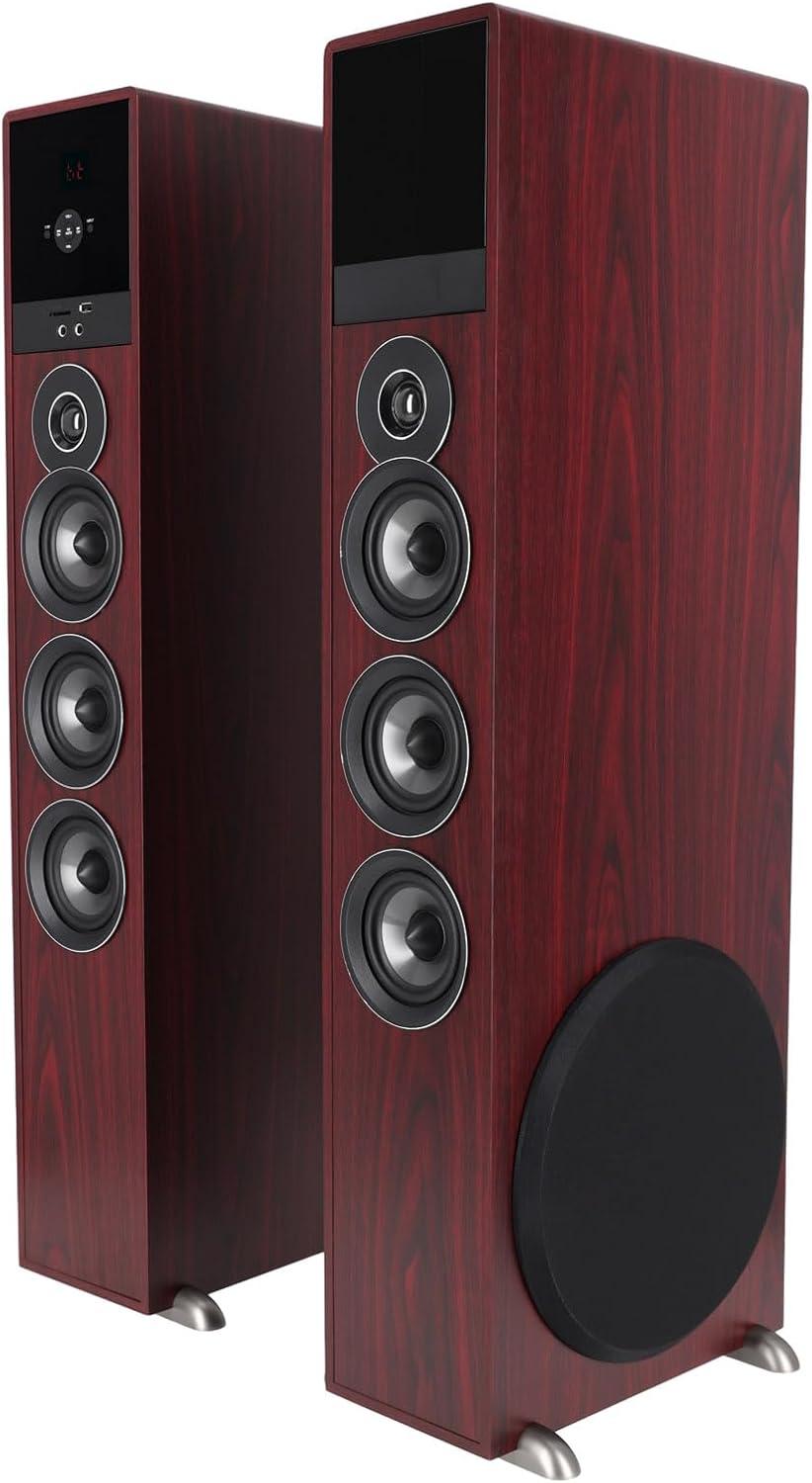Features: RockvilIe TM150C Complete Powered Home Theater Tower Speaker System With Dual 10″ Subs. Built In Bluetooth with 70 foot range and perfect interference-free sound quality. Built in USB playback. Built in SD card playback. Built in FM radio with crystal clear reception. (2) 10 subwoofers with incredibly loud and deep bass response. (6) Full range drivers: 4 full range drivers with polypropylene cones, rubber surrounds, and bullet dust cap to give you incredible loud and clear sound