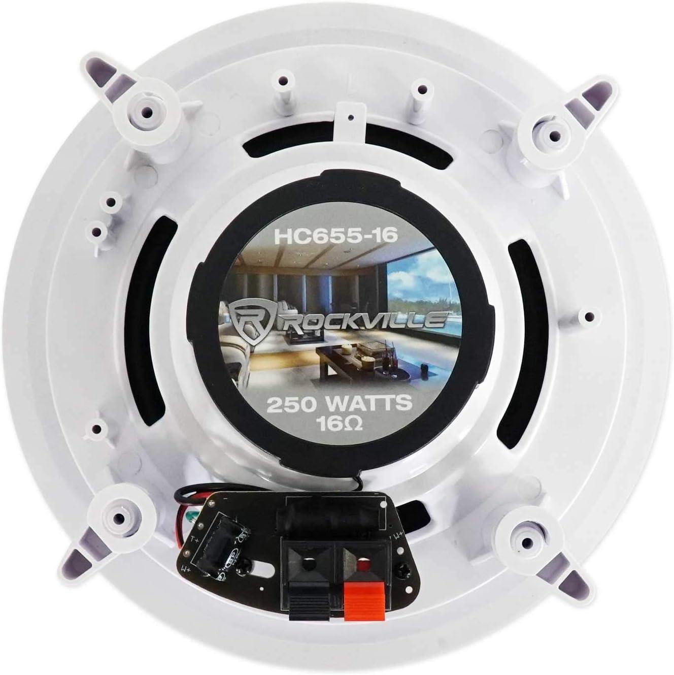 Package Includes: (6) Pair RockvilIe HC655-16 6.5″ 500 Watt In-Ceiling Home Theater Speakers 16 Ohm. Features: Pair of RockvilIe HC655-16 6.5 White 500 Watt 2-Way In-Ceiling Home Theater Speakers