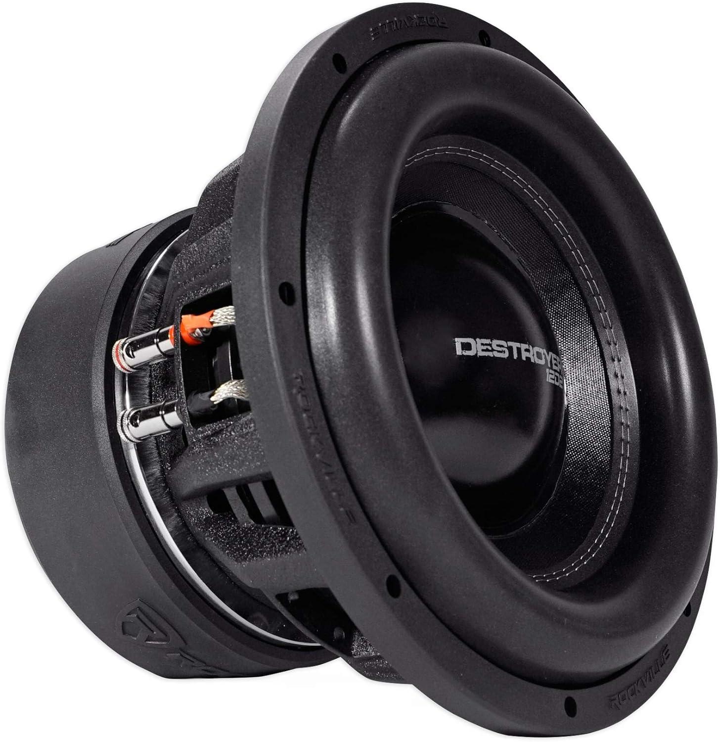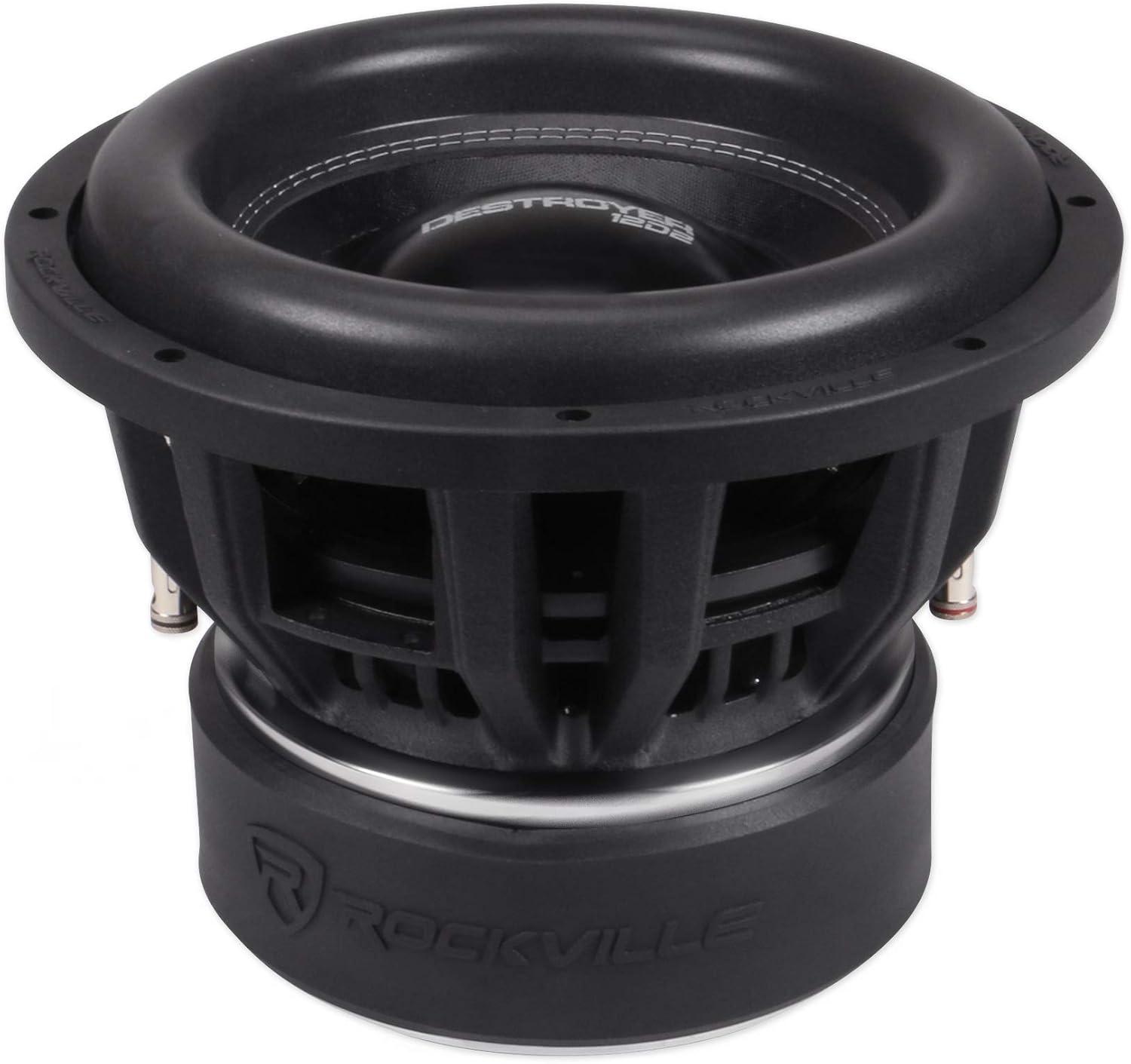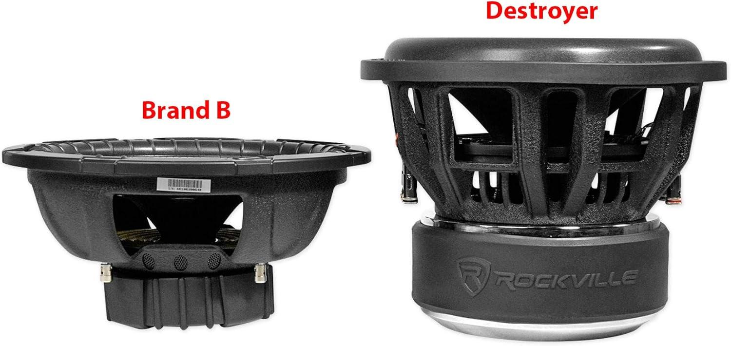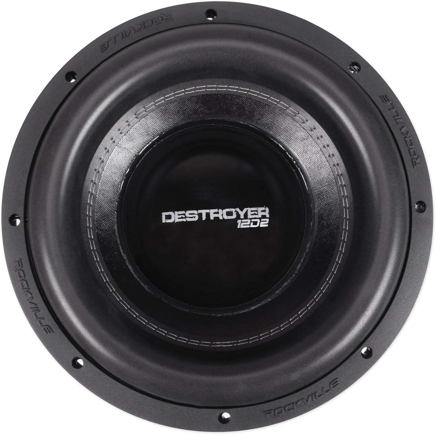 Features: Rockville DESTROYER 12D2 12″ Dual 2-Ohm Car Subwoofer. Peak Power Handling: 8000 Watts. Program Power Handling: 4000 Watts. CEA Rated RMS Power Handling: 2000 Watts. Voice Coils are made in the USA! 3 4-Layer Black Aluminum Voice Coils Wound with Aluminum WireUSA Voice Coils are hands down The Best in the world The voice coils are rated to withstand high temperatures of 300-350C,