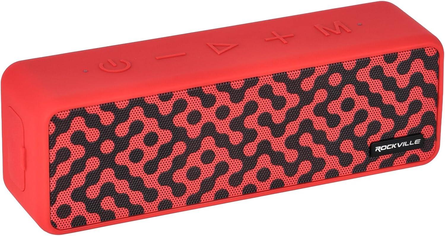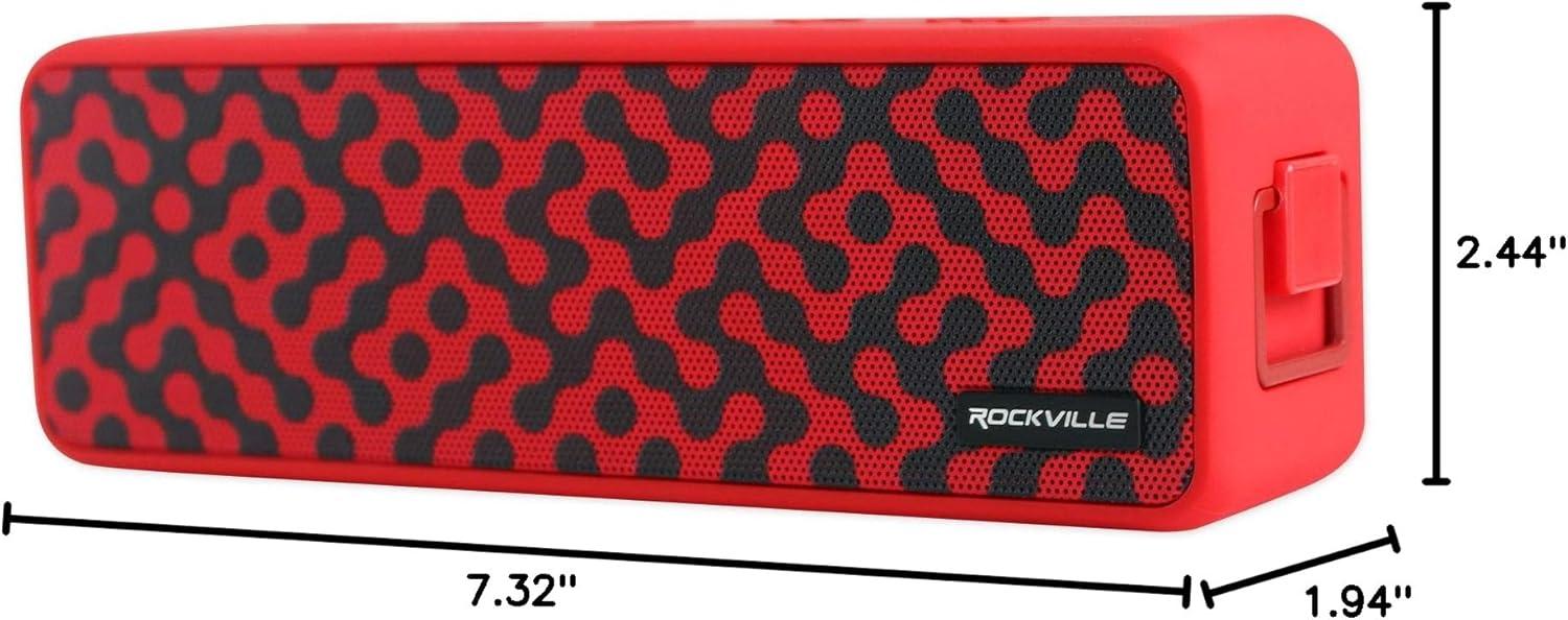 lphone and Android devices will display the battery life of the speaker when connected through Bluetooth, Rugged and Shockproof with Rubberized Impact-Resistant Silicone Feet, Perfect for shower, bedroom, kitchen, biking, restaurant, yoga, camping, hiking, pool, beach, on-the-go, and much more!, Product Dimensions: 7.32″ x 1.94″ x 2.44″, Product Weight: 1.12 lbs, Color: Red/Black