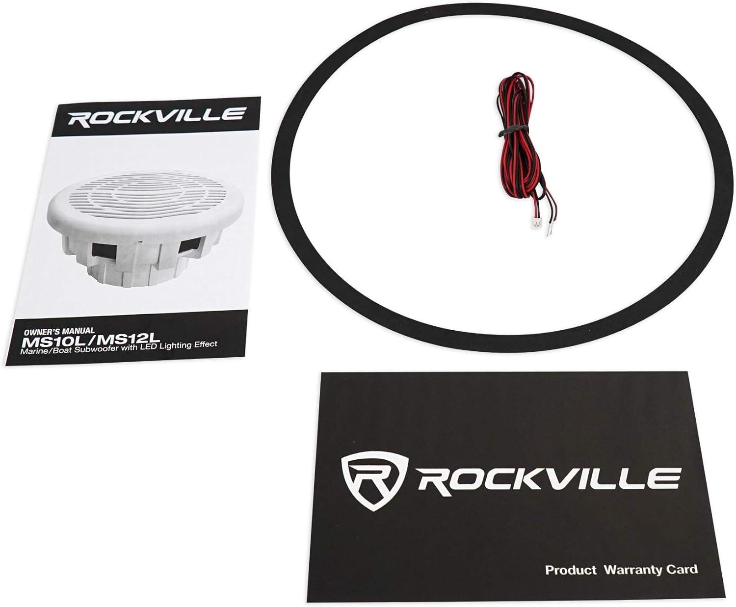 RockvilIe MS12LB 12″ Marine Free Air Subwoofer with LED's. Free air subwoofer does not require any enclosure. Max Power: 2800 Watts. RMS Program Power: 1400 Watts. RMS Power: 700 Watts
