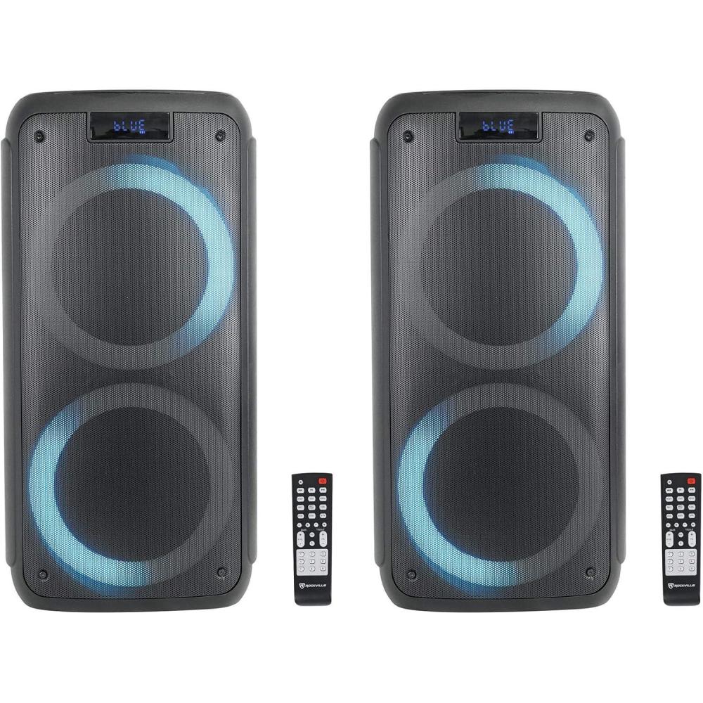 Package Includes: (2) RockvilIe ROCK PARTY 8 Dual 8″ Battery Powered Home/Portable Bluetooth Speaker. What's in the Box: Speaker. Full function remote. Power adapter. Owners manual and warranty card. What makes the Rock Party 8 the perfect speaker for your party Fully wireless with a 3-6 hour battery life per charge. Weather your party is indoors or outdoors this speaker has you covered!