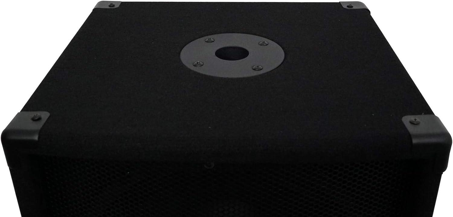 Ergonomic Recessed Handles. Molded Steel Grill. Aviation Grade Black Carpet. Pole Mount. Rubber Isolating Feet. Binding Post / Banana Plug Terminals (Negative/Positive). 1/4 Jack (In/Out)