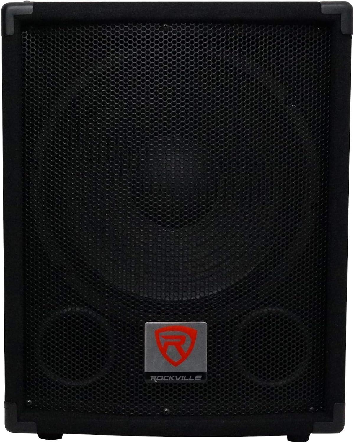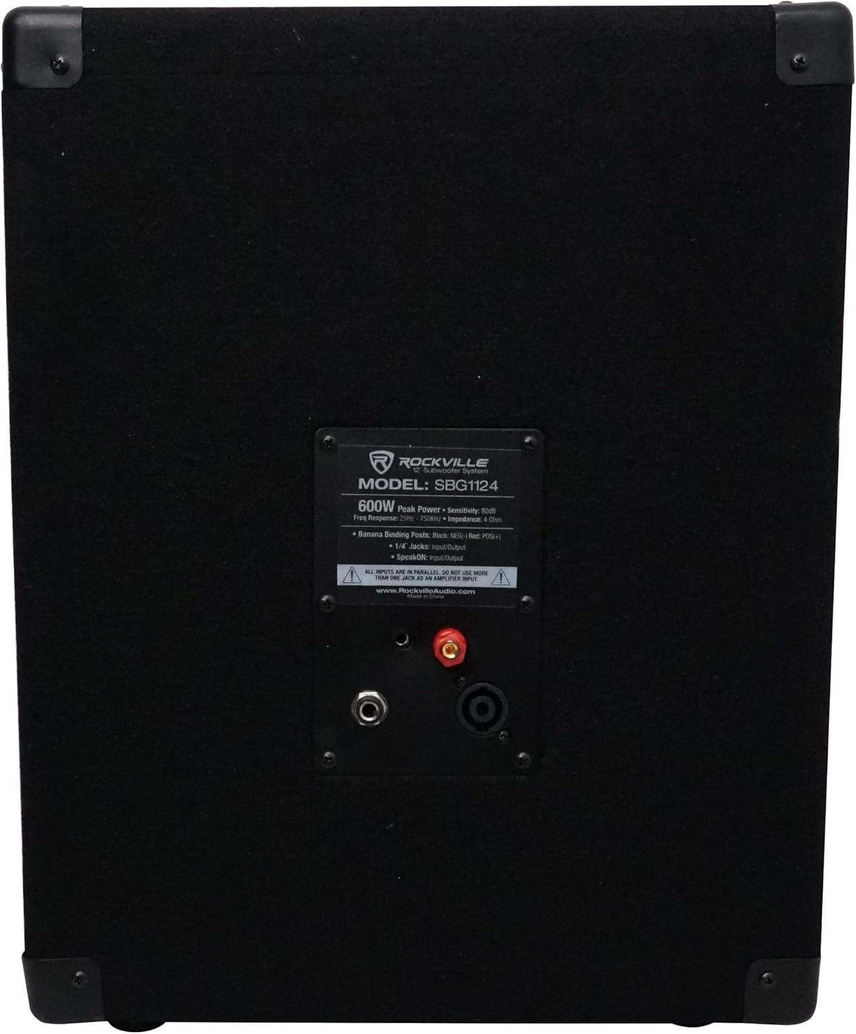 (2) RockvilIe SBG1124 12″ 600 Watt Passive Pro DJ Subwoofers w/ MDF Cabinet and Pole Mount. 12 Pro audio woofer. 300 Watts RMS / 400 Watts Program / 600 Watts Peak