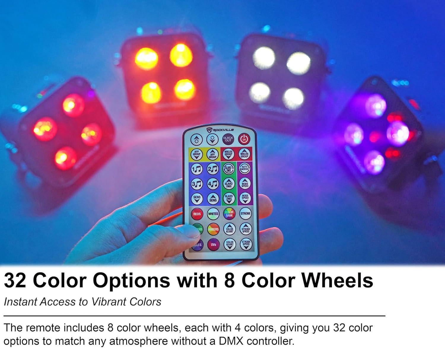 COMPACT AND BRIGHT: Each MINI IR4 has 4x12W RGBWA+UV LEDs, half the size of traditional par lights, delivering powerful color washes for DJs, weddings, and parties.