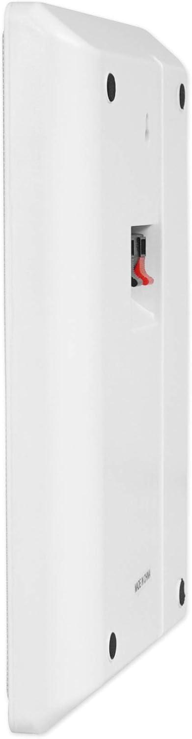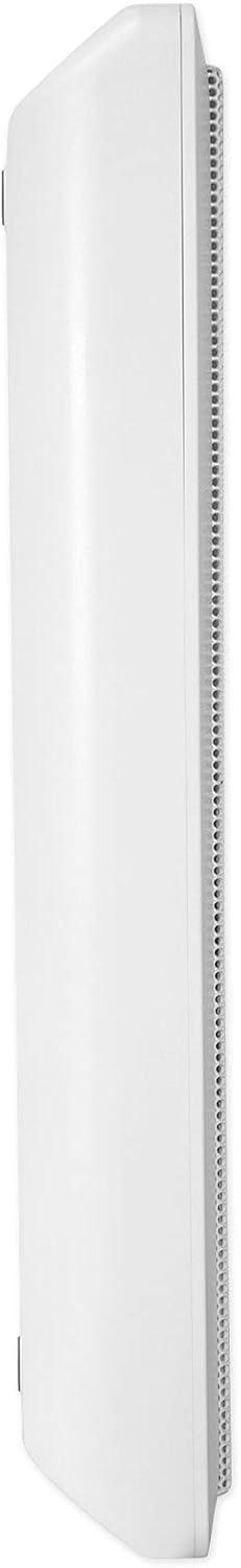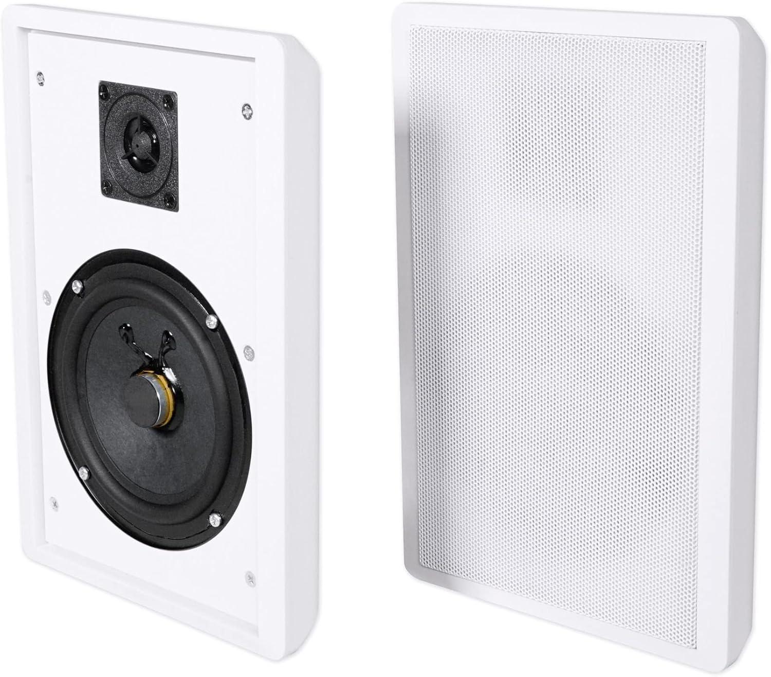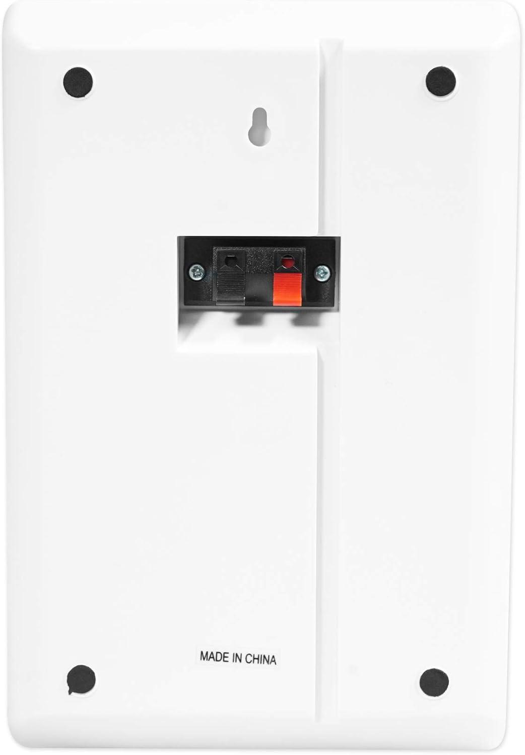 5.25 Woofer with Paper Cone has Natural Sound Reproduction with Clear Mids and Bass. 0.5 Mylar dome tweeter delivers pristine highs. Sensitivity: 89 dB. Nominal Impedance: 8 Ohm. Frequency Response (3db): 100Hz – 20kHz. Cabinet Material: ABS. Color: White. Shielded grill offers additional protection from dust and damage. Easily hangs on your wall Just as easy as hanging a picture!. Hanging bracket is molded into the speaker