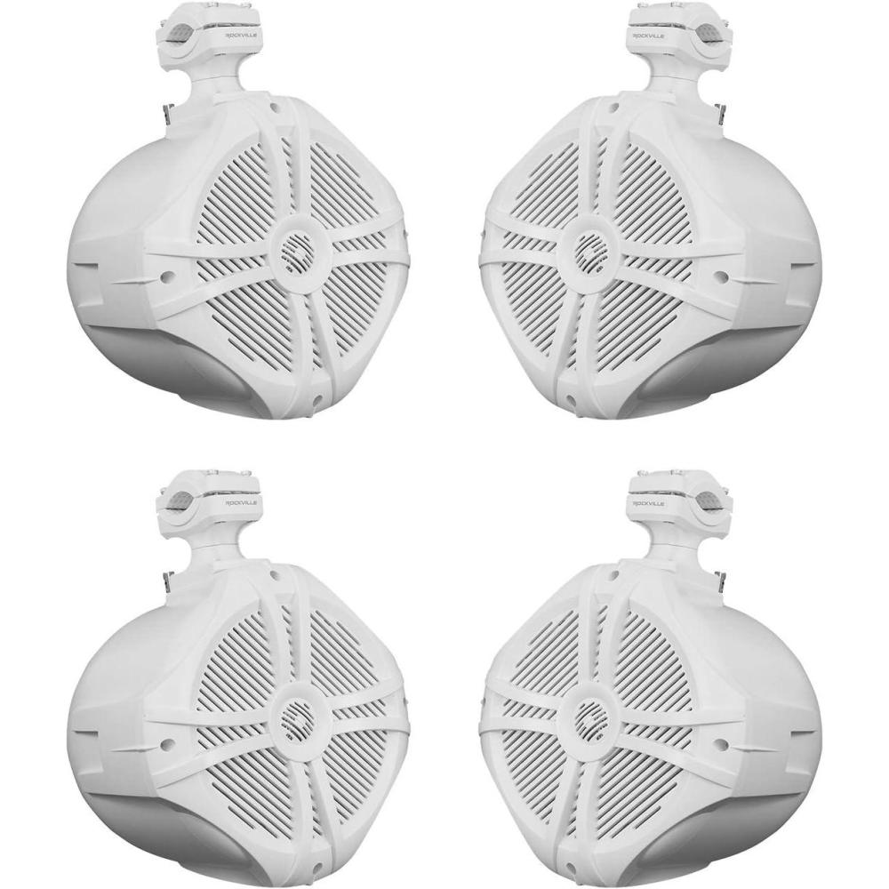 Package Includes: (2) Pair RockvilIe RWB90W White 8″ 300w Marine Wakeboard 360 Swivel Tower Speakers. Includes: (2) Wakeboard Speakers. (2)360Swivel Mounting Brackets. Integrated Grill. Installation Hardware. Description: No exaggerated power ratings : These speakers are rated with true world RMS ratings. No bootleg or exaggerated power ratings like other brands. These speakers are 200 watts RMS and 300 watts peak. (200 watts RMS is equal to about 500 watts rated by other brands)