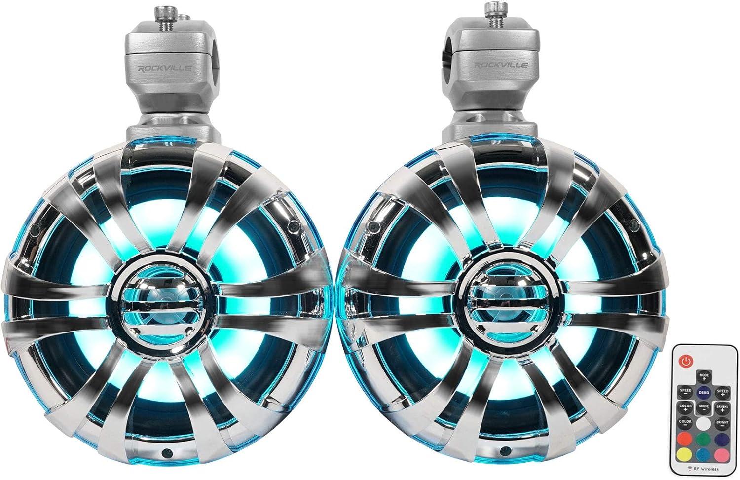 Pair 6.5″ marine wakeboard tower speakers with built in LED's. Waterproof leading wire. Mounting brackets and mounting hardware. ABS chrome grill. Installation hardware. Wiring instructions. Features: Pair Rockville WB65KLED 6.5″ Polished Silver Wakeboard Tower Speaker w/ Built in LED's