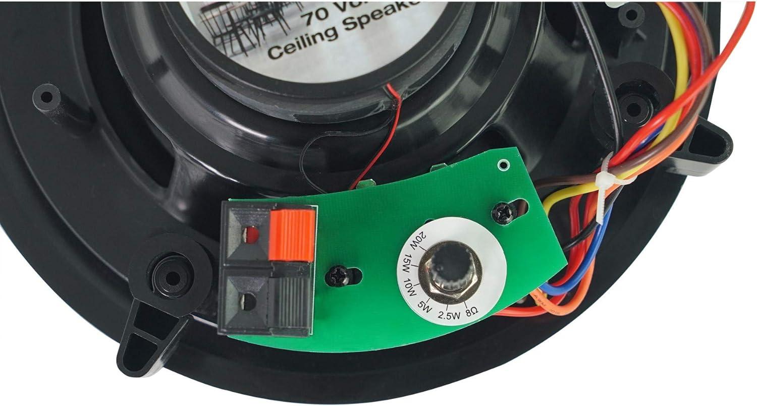 Pair of RockvilIe CC65T Black 6.5 Commercial 70v In-Ceiling Speakers for Restaurant/Bar/Cafe. 70V Power Options: 20w 15w 10w 5w 2.5w. 20w. 15w. 10w. 5w. 2.5w. Polypropylene Cone. Rubber Surround