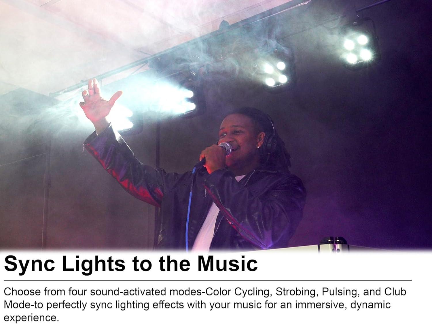 4 SOUND MODES & 6 COLOR WHEELS: Choose from 4 sound modes and 8 color wheels to create stunning lighting effects. Control up to 48 colors and brightness directly from the remote, perfect for any event or party.