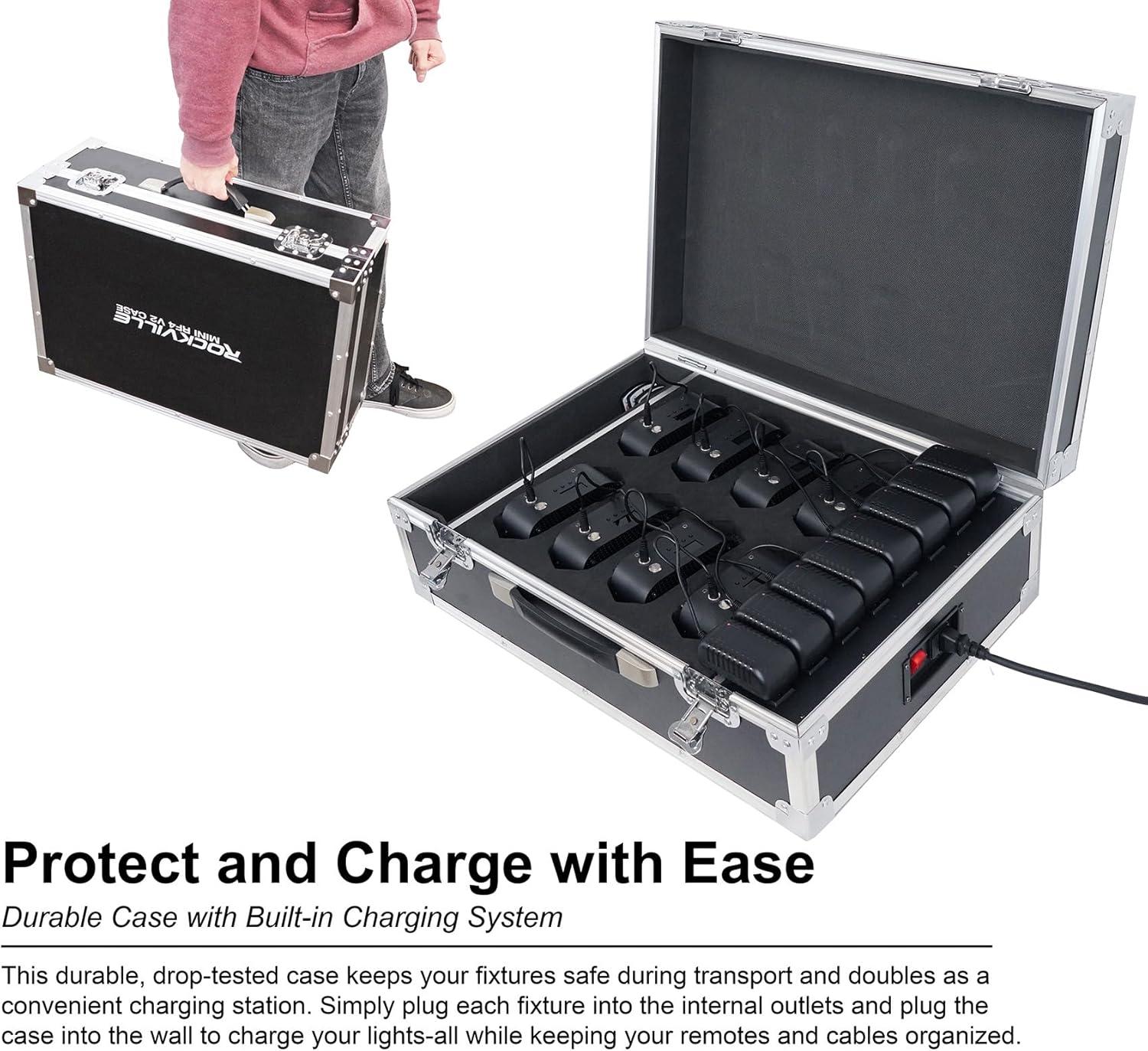 Rockville 8 Pack MINI RF4 V2 Black LED Par Wash Up Lights with Charging Case, RGBWA+UV, App, Wireless DMX, Rechargeable, Perfect for DJ/Events(Black)