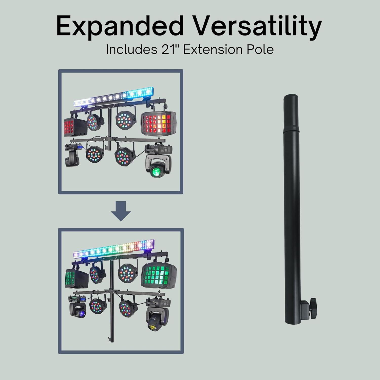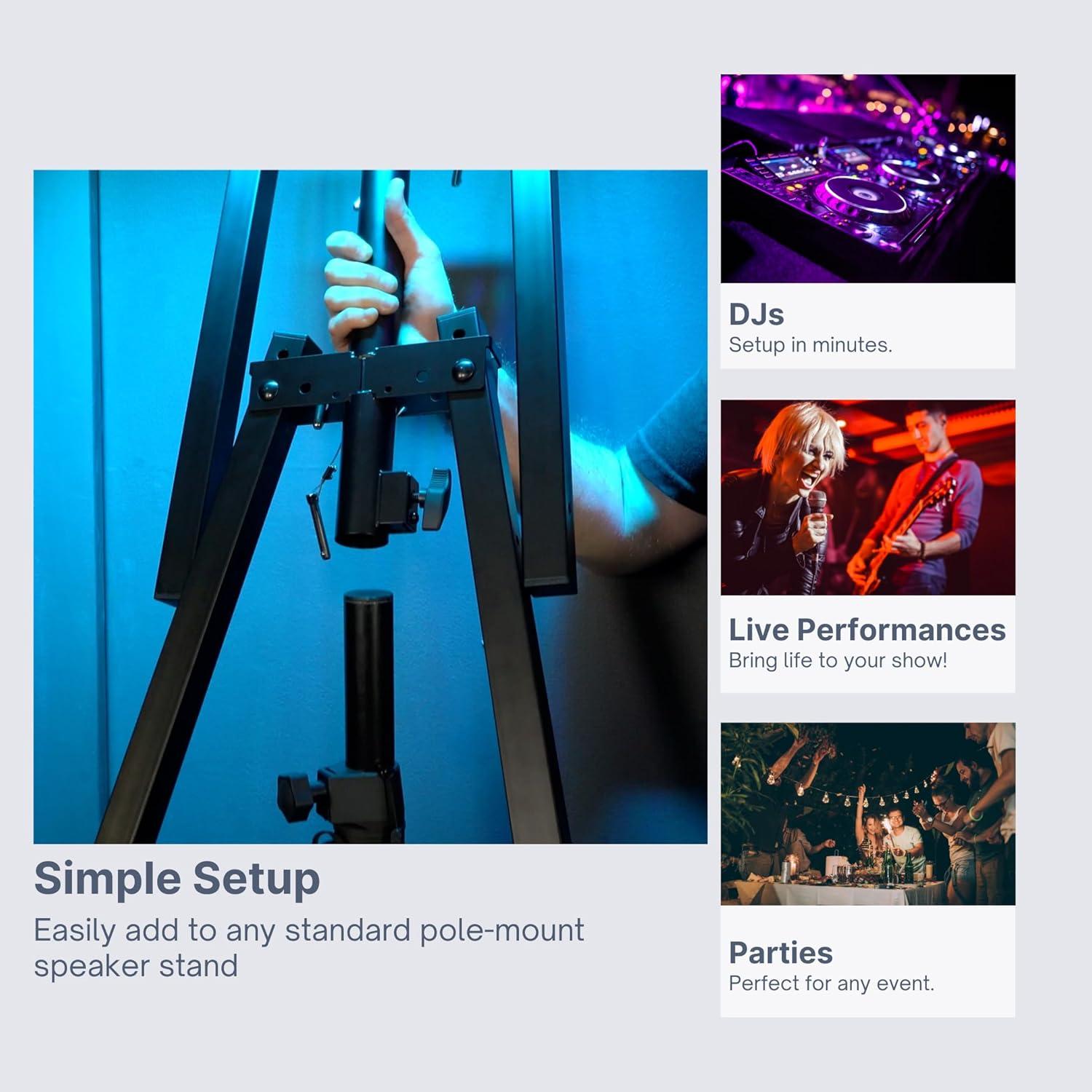 TRANSFORM YOUR STAND INTO A T-BAR LIGHTING STAND: This innovative accessory turns any 35MM pole mount speaker stand into a versatile T-bar lighting stand, providing a professional setup for DJs, performers, and event organizers.