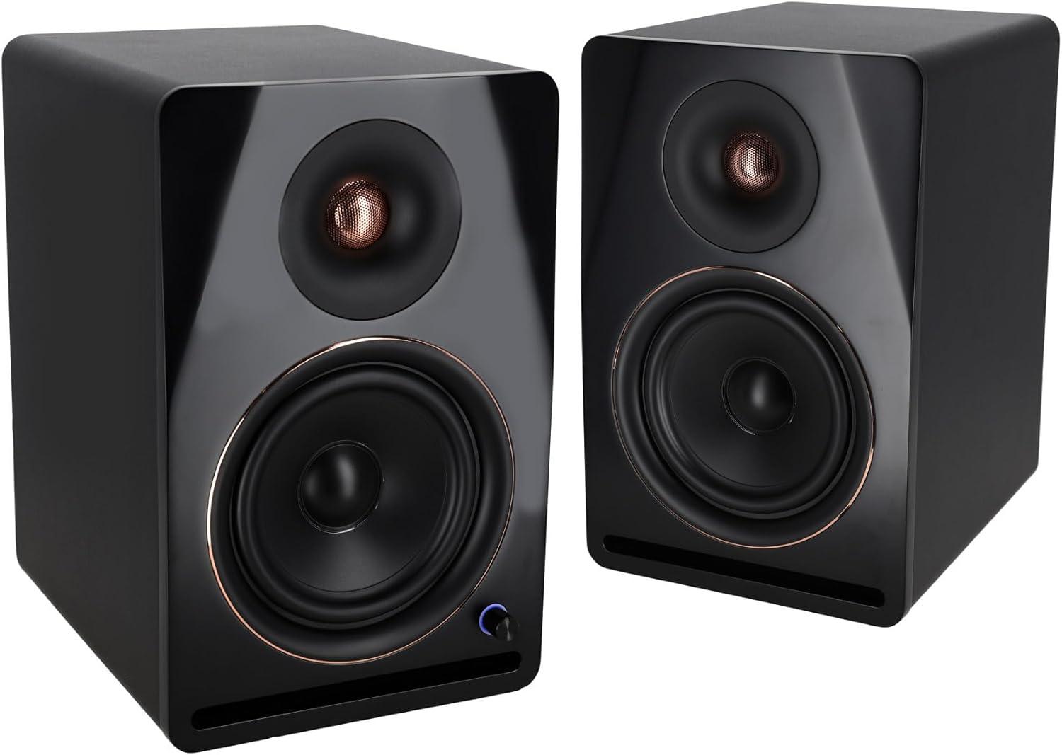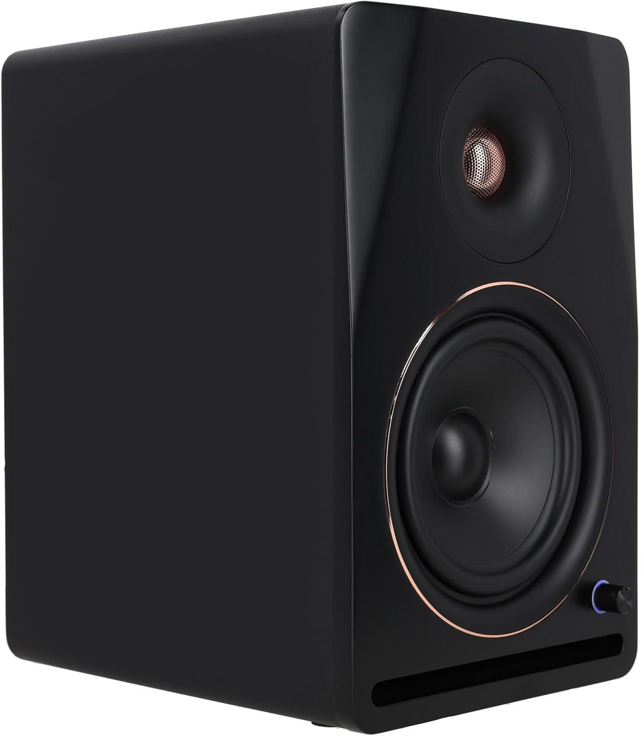 Advanced I/O & Dark Wood Cabinet Design: Versatile connectivity including balanced XLR/TRS combo, RCA, and 3.5mm Aux inputs; includes RCA line output for subwoofer expansion; premium 1/2 inch MDF enclosure with a beveled baffle to minimize acoustic diffraction