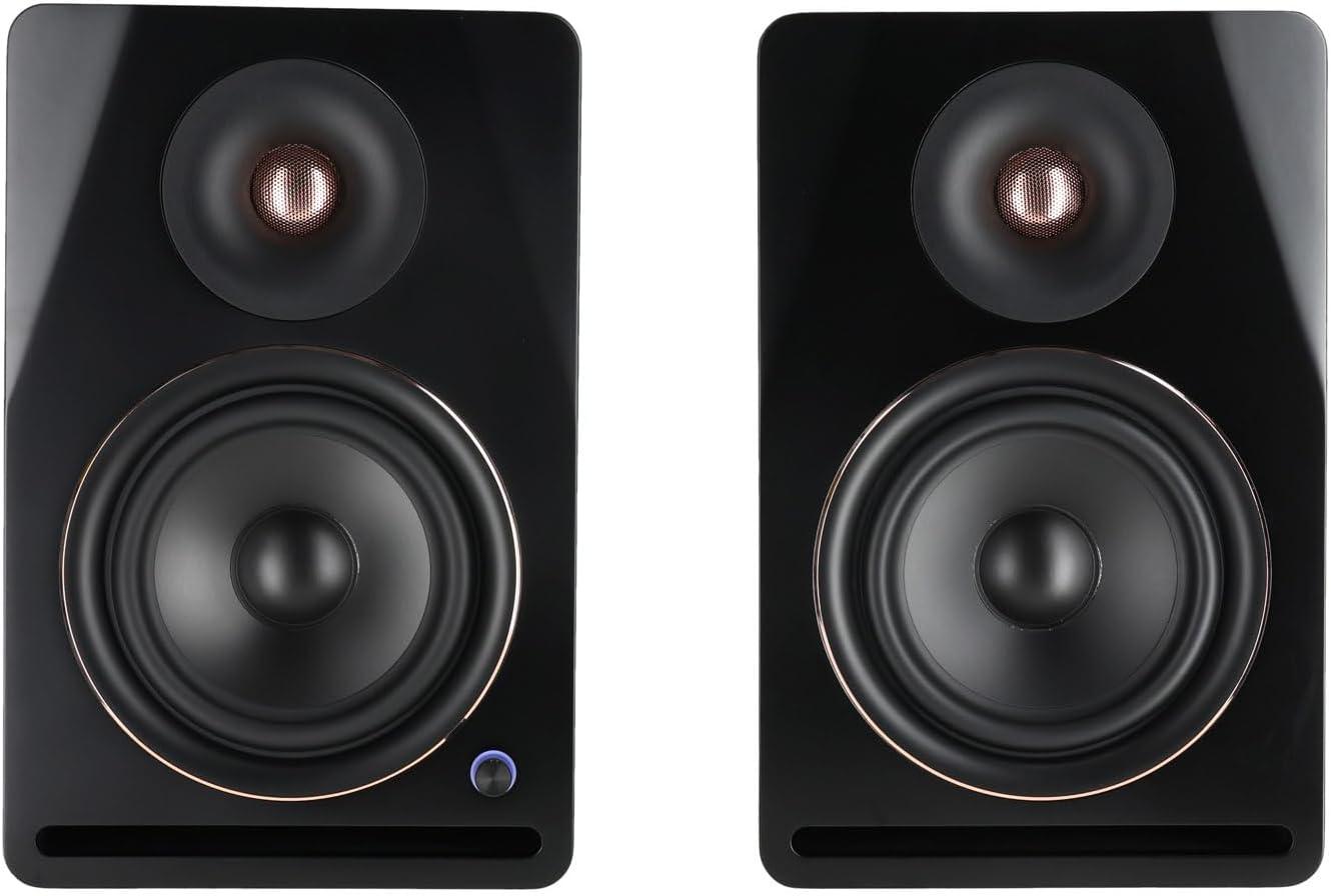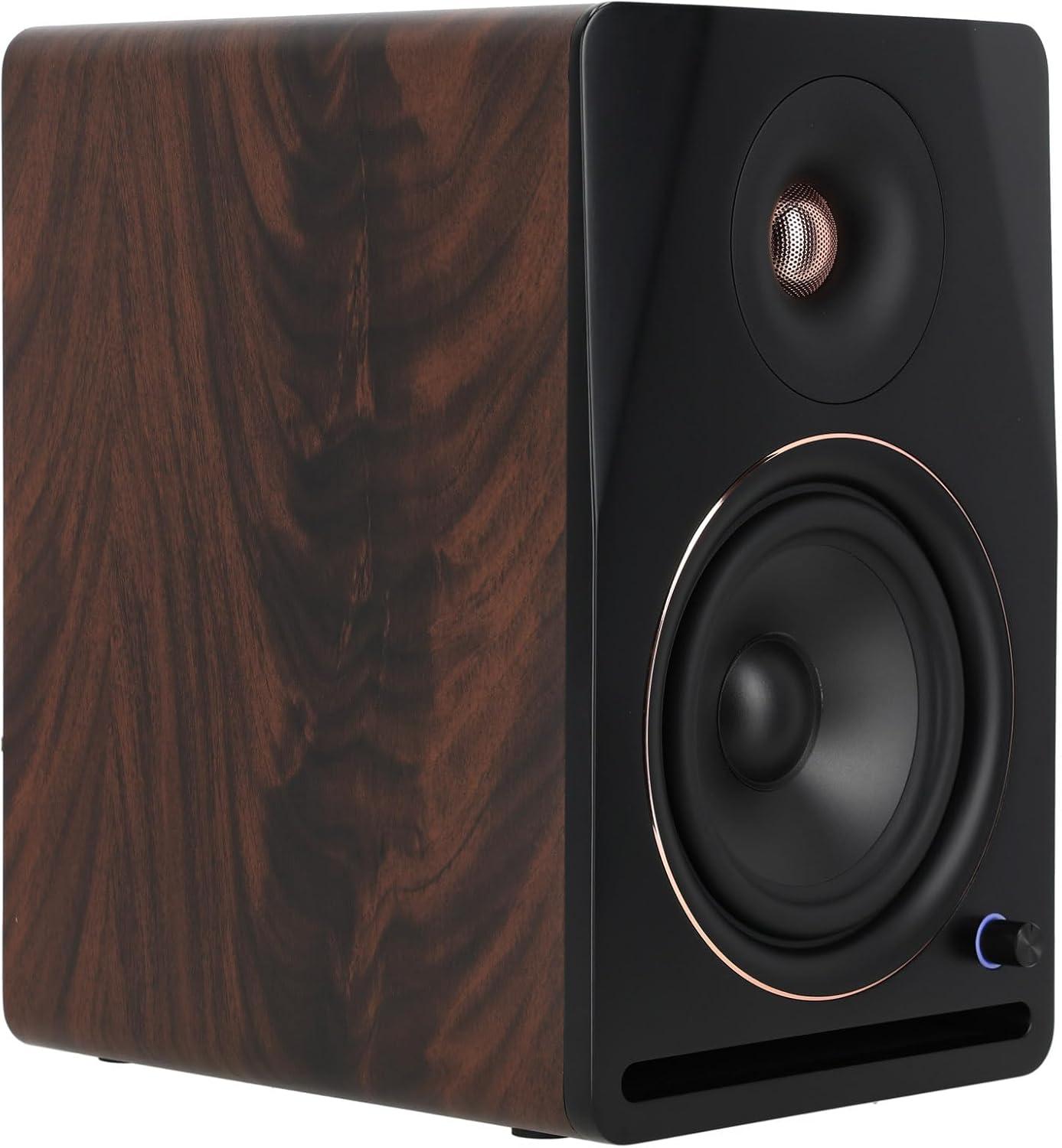 Advanced I/O & Dark Wood Cabinet Design: Versatile connectivity including balanced XLR/TRS combo, RCA, and 3.5mm Aux inputs; includes RCA line output for subwoofer expansion; premium 1/2 inch MDF enclosure with a beveled baffle to minimize acoustic diffraction