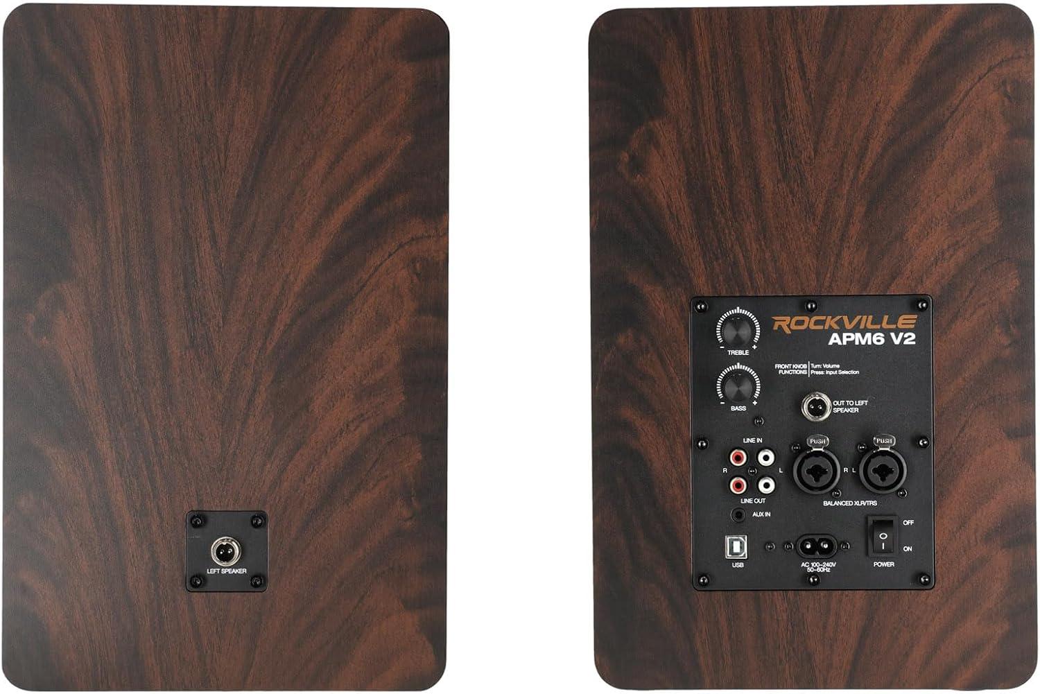 Rockville APM6D V2 6.5" Powered Studio Monitor Speakers Pair, Bluetooth, 100W RMS/400W Peak, Dark Wood(Dark Wood)