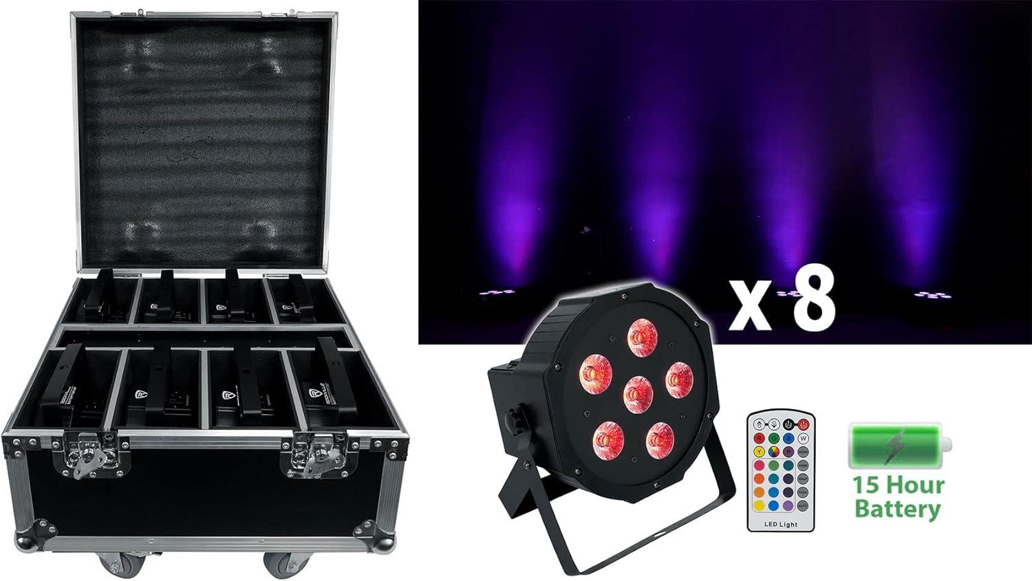 Rockville Battery PAR Pack 6RF Black LED Wash Lights 36W Each (8), Rechargeable RGBWA+UV, RF Remote, Wireless DMX, Charging Case, Portable for DJs and Event Lighting(Black)