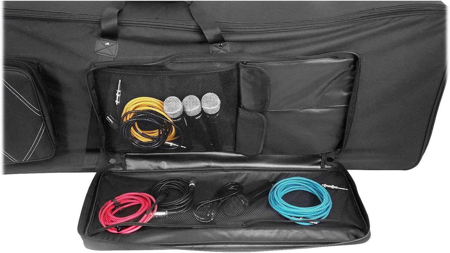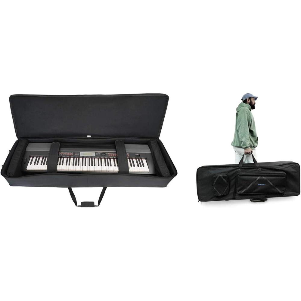 CUSTOMIZABLE FIT:- Removable foam inserts and adjustable padded straps secure various keyboard sizes, ensuring a snug fit for brands like Yamaha, Korg, and Roland, preventing movement.