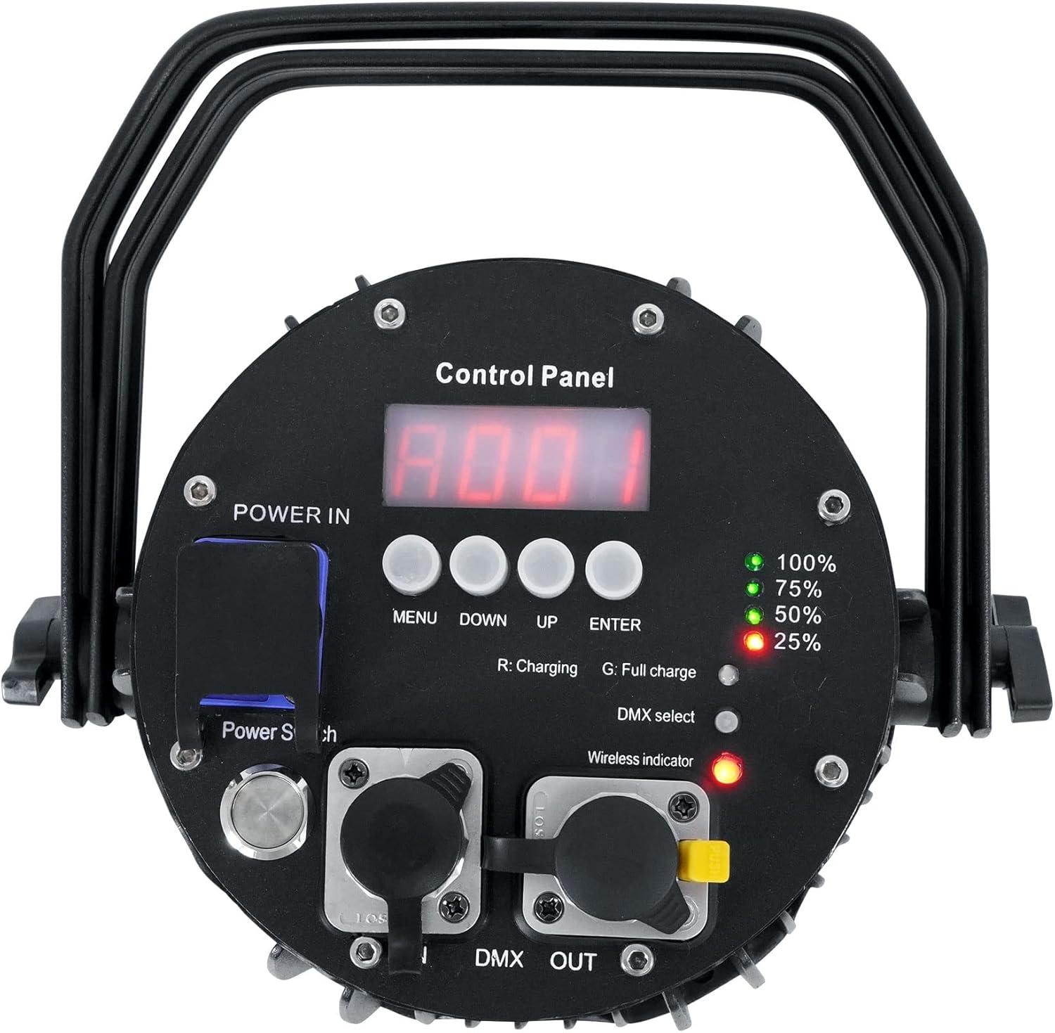 WIRELESS DMX CONTROL: Built-in 2.4GHz wireless DMX 512 receiver with 100 ft range for easy cable-free programming and professional lighting synchronization.