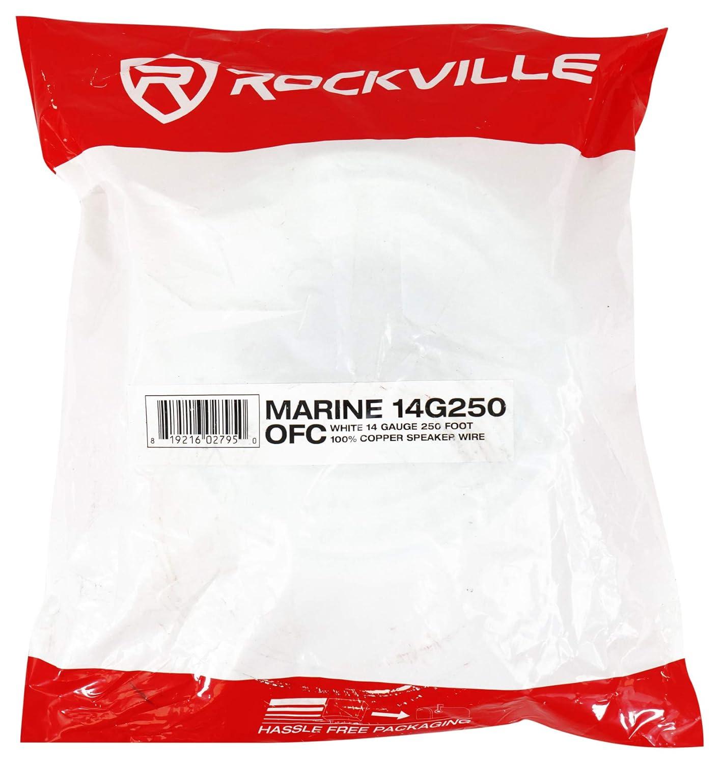 Rockville BLUE 14G250 OFC 14 Gauge 250ft 100% Copper Speaker Wire, Marine-Grade, Corrosion-Resistant, Flexible Design, for Car and Marine Audio(White)