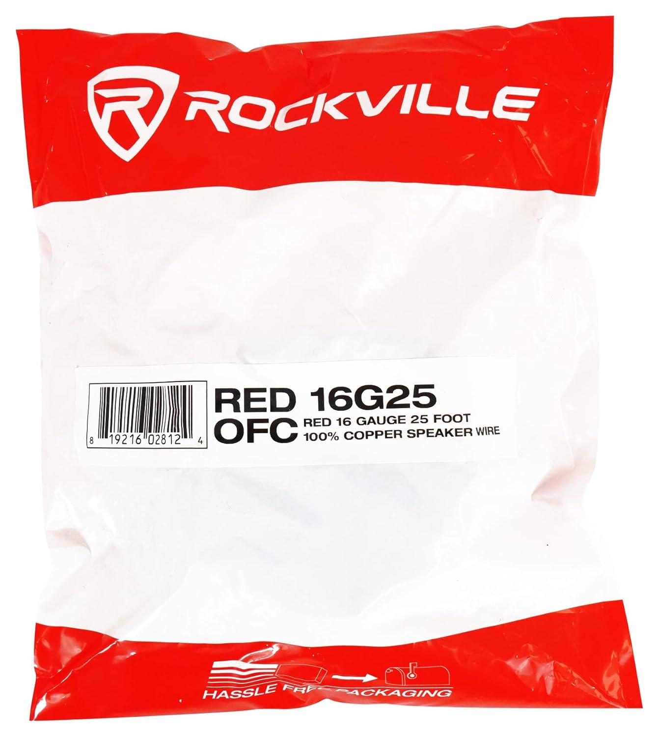 Rockville Blue 16G25 16 Gauge 25 Foot Speaker Wire, 100% Copper, Tinned Marine-Grade Coating for Corrosion Resistance, Flexible and Easy to Install for Car Audio and Home Theater(Red)