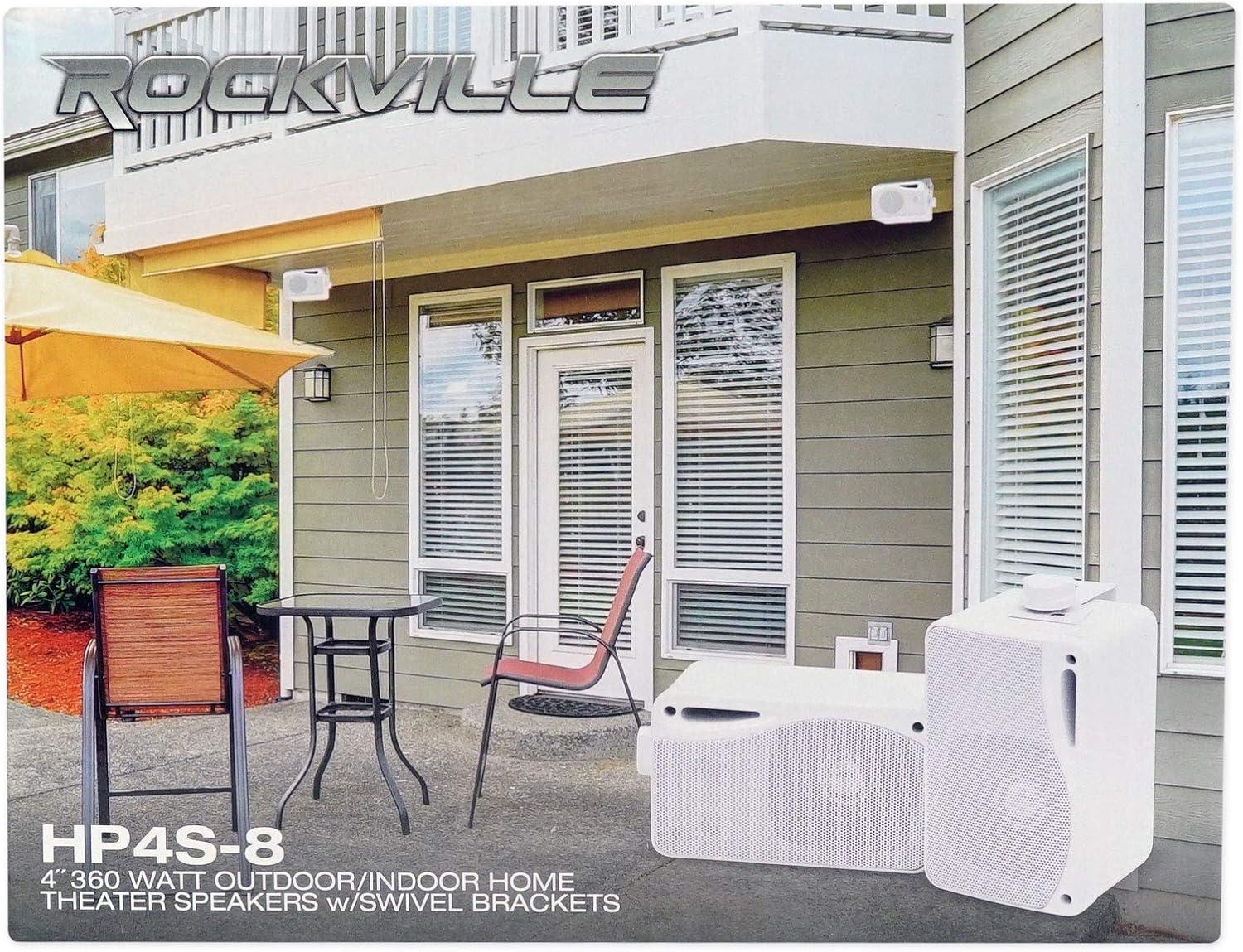 Package Includes: (1) RockvilIe BluTube 70w Tube Amplifier/Home Theater Stereo Receiver w/ Bluetooth. (2) Pairs of RockvilIe HP4S-8 4″ Outdoor/Indoor Home Theater Speakers w/ Swivel Bracket.