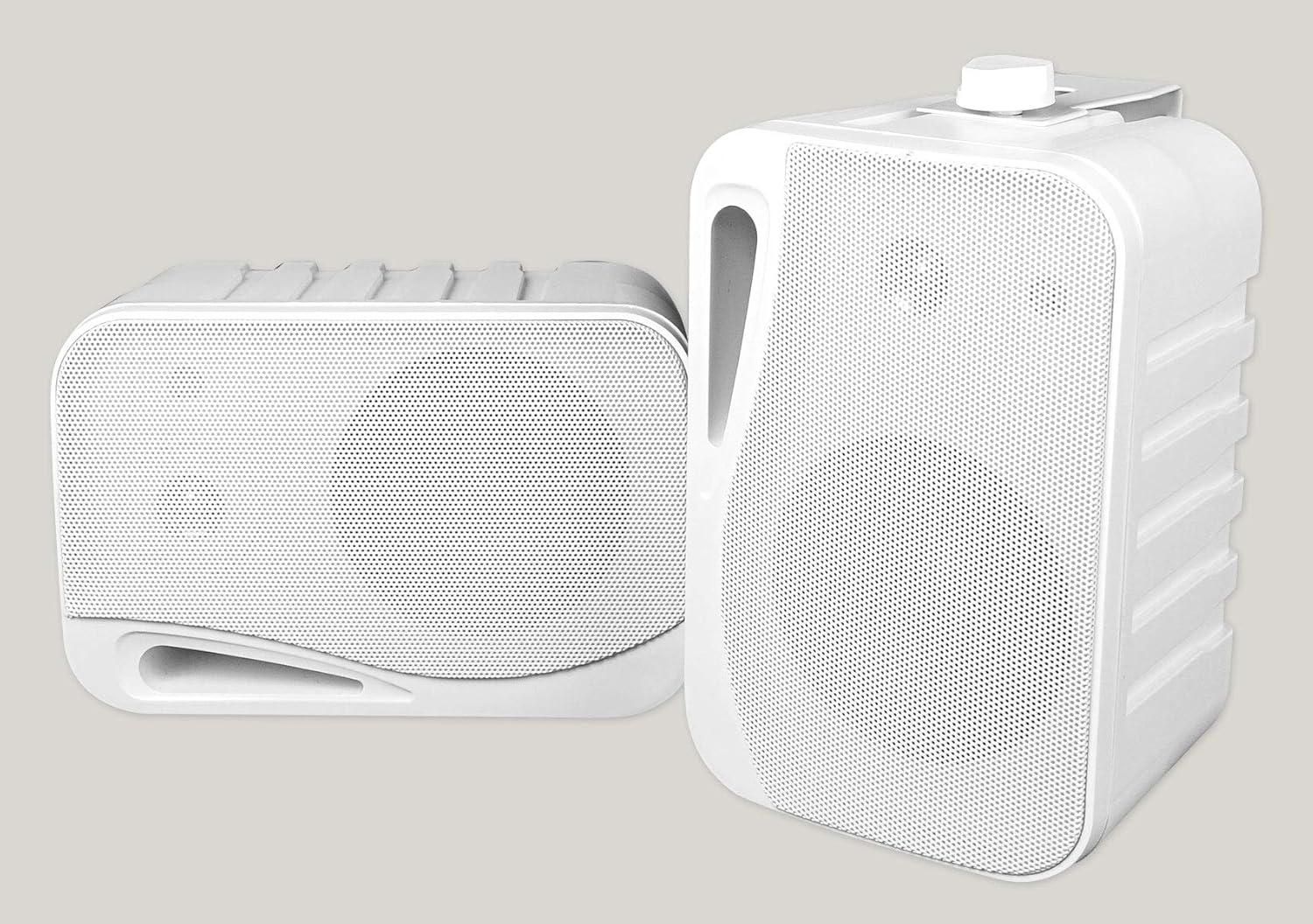 Peak Power Handling: 360 Watts (per pair). RMS Power Handling: 120 Watts (per pair). IPX44 rated to withstand, rain, wind, etc. Stainless steel grill will not rust. Polypropylene Cone. Rubber Surrounds. 1 Aluminum Voice Coils. 4 Woofer. Mylar Dome Tweeters. 8 oz. Ferrite Magnet. High Quality Spring Loaded Push Terminals. Completely Waterproof. Tough ABS Construction. Swiveling Metal Mounting Brackets. Removable Metal Rustproof Grills. Built-in Capacitor Crossover Network