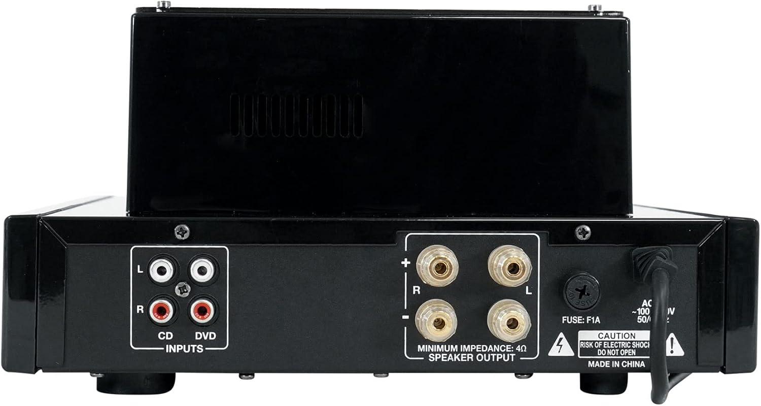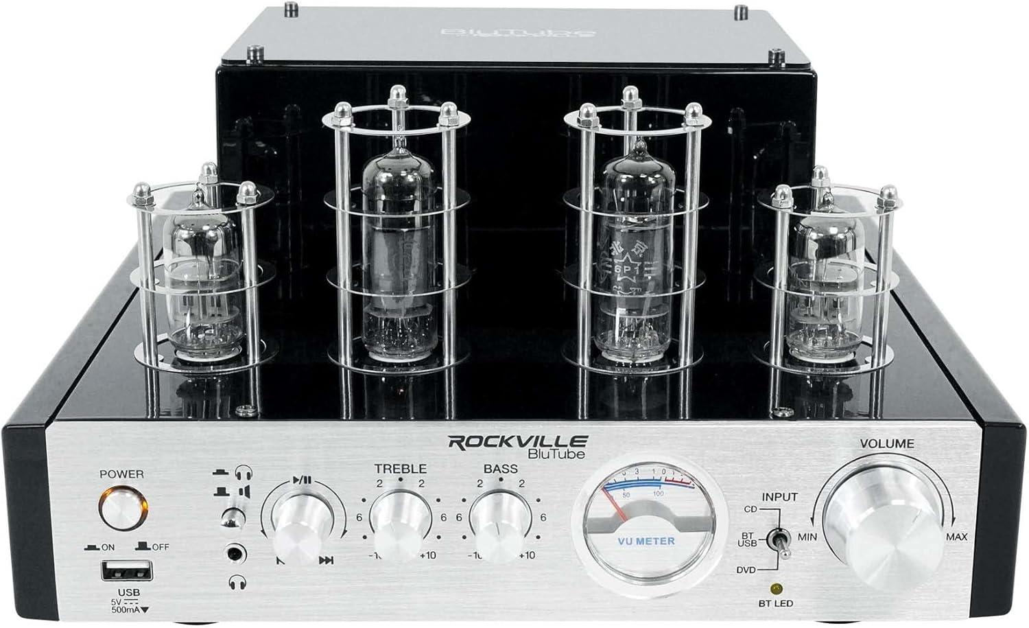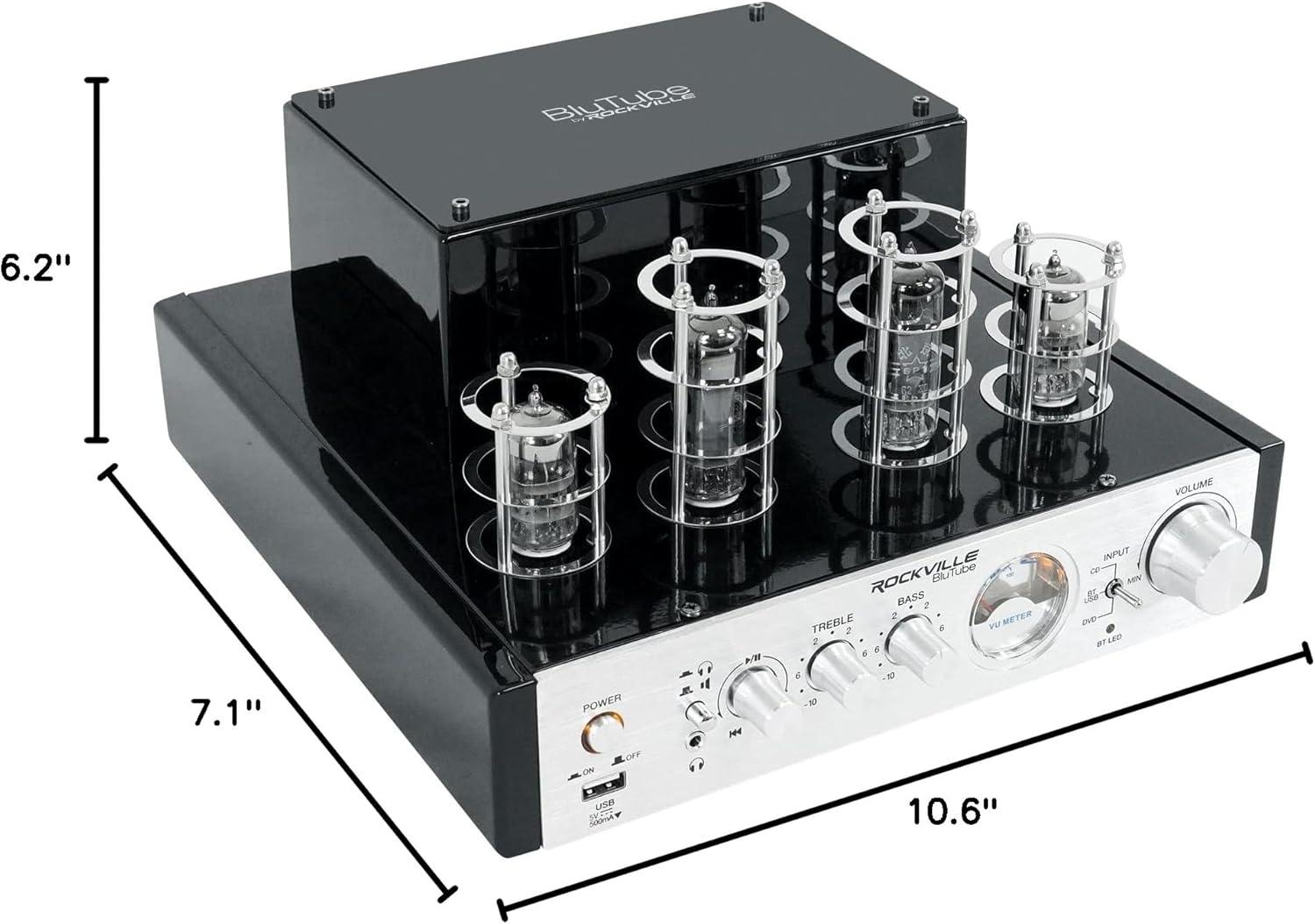 Tube amps do not hard-clip even at high volumes and are extremely efficient. Due to this the amp sounds more like double the rated power!. Built in Bluetooth with 33 foot range. Built-in Preamplifier. (2) sets of RCA inputs to connect to any audio device like a TV, Laptop, or MP3 player, etc. Headphone output. VU meter. Adjustable bass and treble (2 band equalizer). USB input for music files from USB thumb drive. USB can charge your phone or other USB device